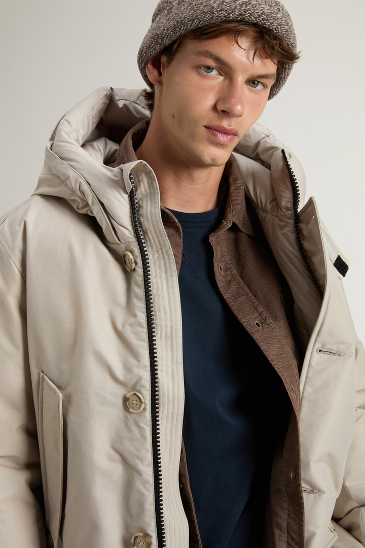 Een hoogwaardig bovenkledingstuk dat een stijlstatement op zich is geworden: wees voorbereid op wat de dag je ook te bieden heeft en begin stoutmoedig aan je volgende avontuur met de Arctic Parka voor heren. Gevuld met warme eendendons en gemaakt van Ramar Cloth, een waterafstotende en windbestendige stof die bescherming biedt bij lichte regen. Hij is afgewerkt met een capuchon en meerdere zakken.