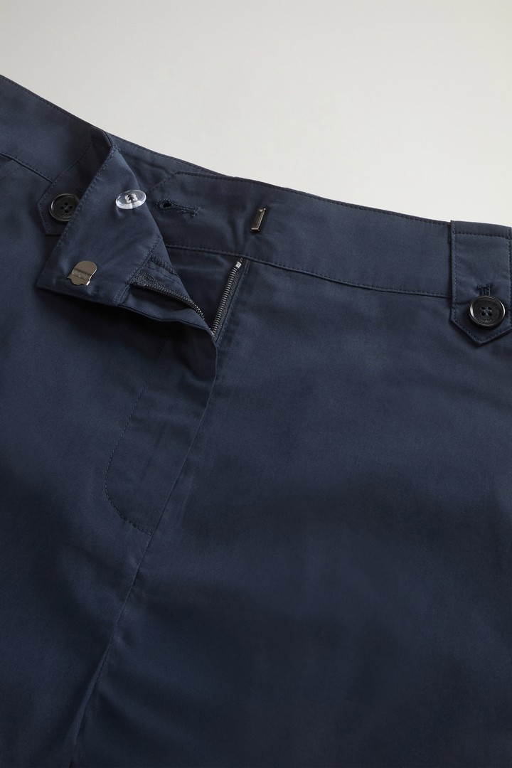 De korte broek van popeline van puur katoen is een essential van de zomergarderobe, dankzij de lichte en compacte stof die zorgt voor frisheid en comfort. Dit zorgt ervoor dat dit kledingstuk een gemakkelijk te combineren item is op warme dagen. De riemlussen in de taille maken het mogelijk om de look af te maken met een riem, terwijl het zijlabel met logo het model discreet van het merkopschrift voorziet.