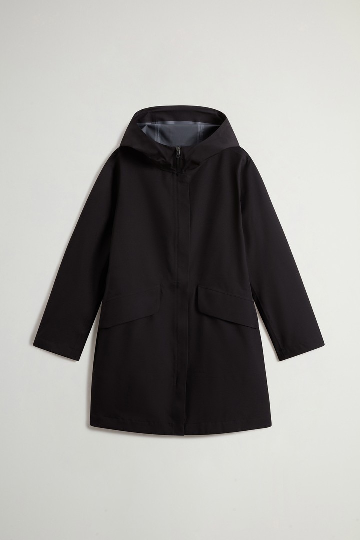 Deze Parka van Light Stretch-stof combineert een functionele pasvorm met een constructie die bedacht is om comfort en bewegingsvrijheid te garanderen. De stof is waterdicht, winddicht en ademend, kenmerken die het geschikt maken voor langdurig gebruik overdag, zelfs bij regen of wind. De volledig getapete naden voegen extra bescherming toe en maken het kledingstuk waterdicht. De lengte van het model biedt meer dekking dan een kort jack, waardoor het ideaal is als buitenlaag over meerdere lagen. De vaste capuchon, de tweewegrits en de verstelbare manchetten dragen bij aan het praktische gemak, dat zowel voor het stadsleven als de dagelijkse buitenactiviteiten geschikt is.