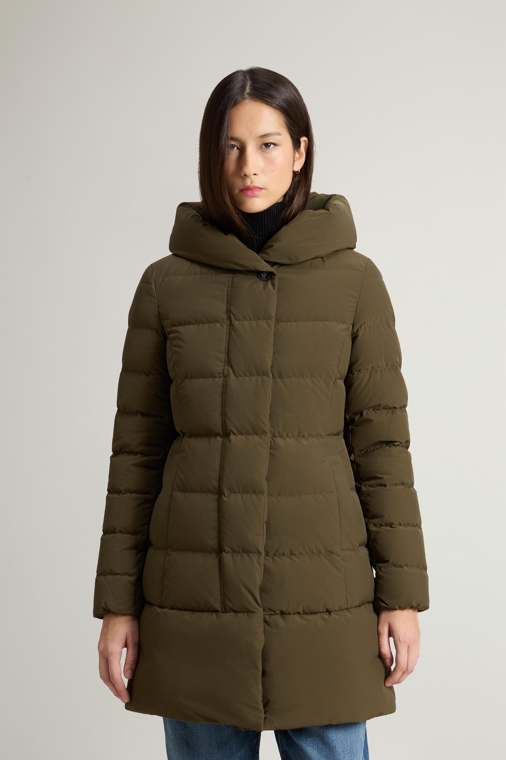 Dank seiner weichen, gesteppten Silhouette und den funktionellen Eigenschaften, die vom Woolrich-Design inspiriert sind, verdient dieser Parka definitiv einen Platz in Ihrer Garderobe. Der Parka ist aus wasserabweisendem und windbeständigem Urban-Touch-Gewebe gefertigt und mit Entendaunen wattiert, um für außergewöhnliche Wärme und Komfort zu sorgen. Die großzügige Kapuze sorgt dafür, dass Sie jedem Wetter standhalten können, während der verdeckte Verschluss auf der Vorderseite und die Pattentaschen dem Kleidungsstück einen eleganten und diskreten Look verleihen.