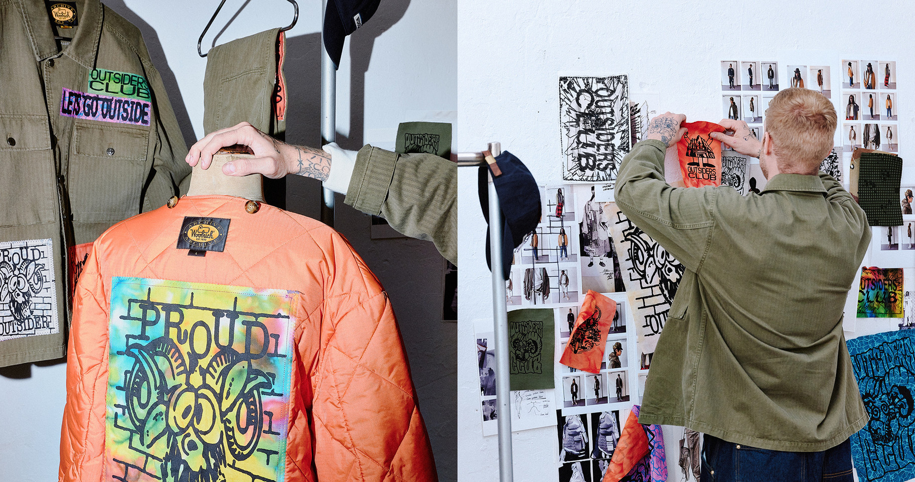 Entre les années soixante et soixante-dix, les vêtements militaires ont subi une véritable transformation aux États-Unis, devenant le symbole d’une vaste gamme de mouvements contre-culturels, des manifestations politiques aux marches pour la paix, en passant par les sous-cultures créatives telles que les mods, les rockeurs, les punks et les artistes. La personnalisation était au cœur de cette réappropriation : l’ajout d’écussons, d’épingles et de dessins pour exprimer des convictions, des valeurs et des goûts, qui donnaient naissance à un style personnel unique. C’est ce que nous avons demandé à l’artiste Daniel David Freeman de faire avec certaines pièces de notre Archive Collection : leur insuffler un symbolisme sous-culturel distinctif par sa touche créative.