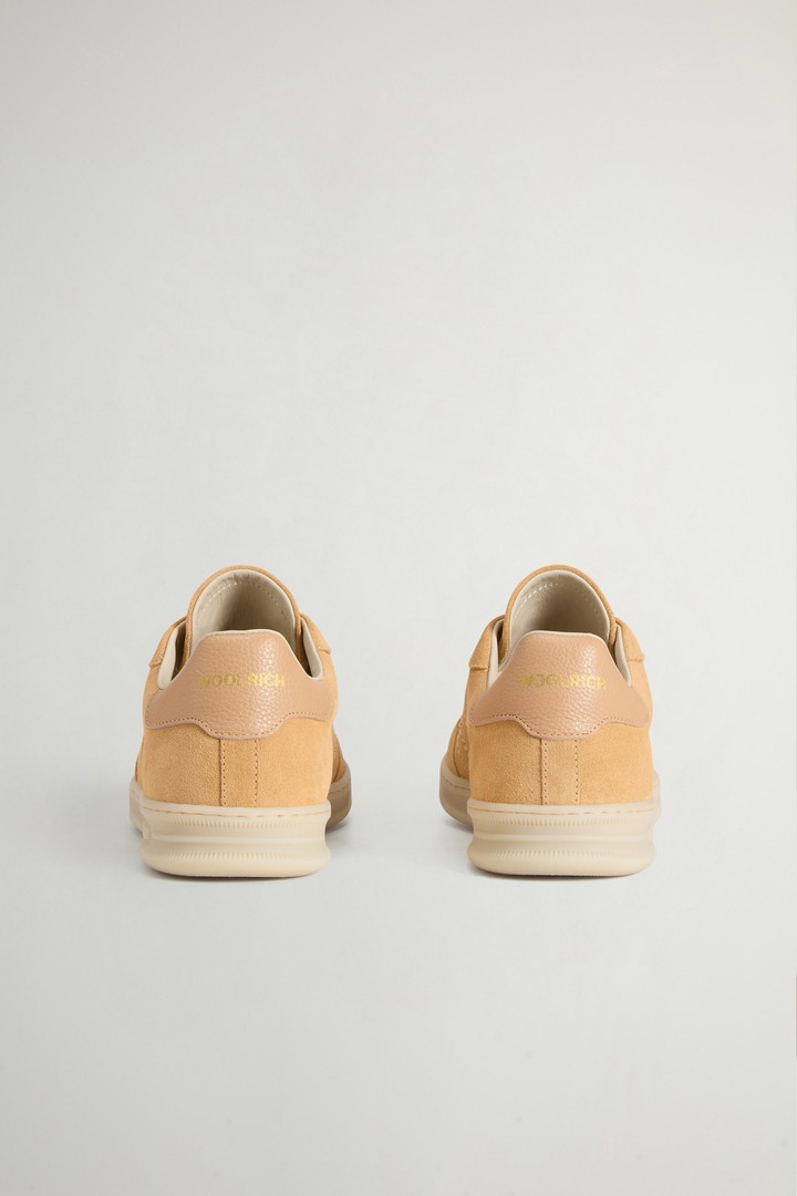 Les sneakers Doubleu Tennis Made in Italy allient des matières recherchées et une identité graphique dans un design contemporain. La tige, réalisée en daim souple, est complétée par un empiècement foulonné ton sur ton au talon pour un effet raffiné et naturel. Les deux bandes latérales, appliquées en diagonale, traversent la chaussure en formant le « W » emblématique de la marque. Les logos embossés à chaud sur la languette, le côté et le talon s'intègrent discrètement, tandis que la semelle intérieure amovible ajoute une touche pratique. Légère, résistante et durable, la semelle en caoutchouc naturel, développée en exclusivité pour Woolrich, est conçue pour offrir confort et adhérence.