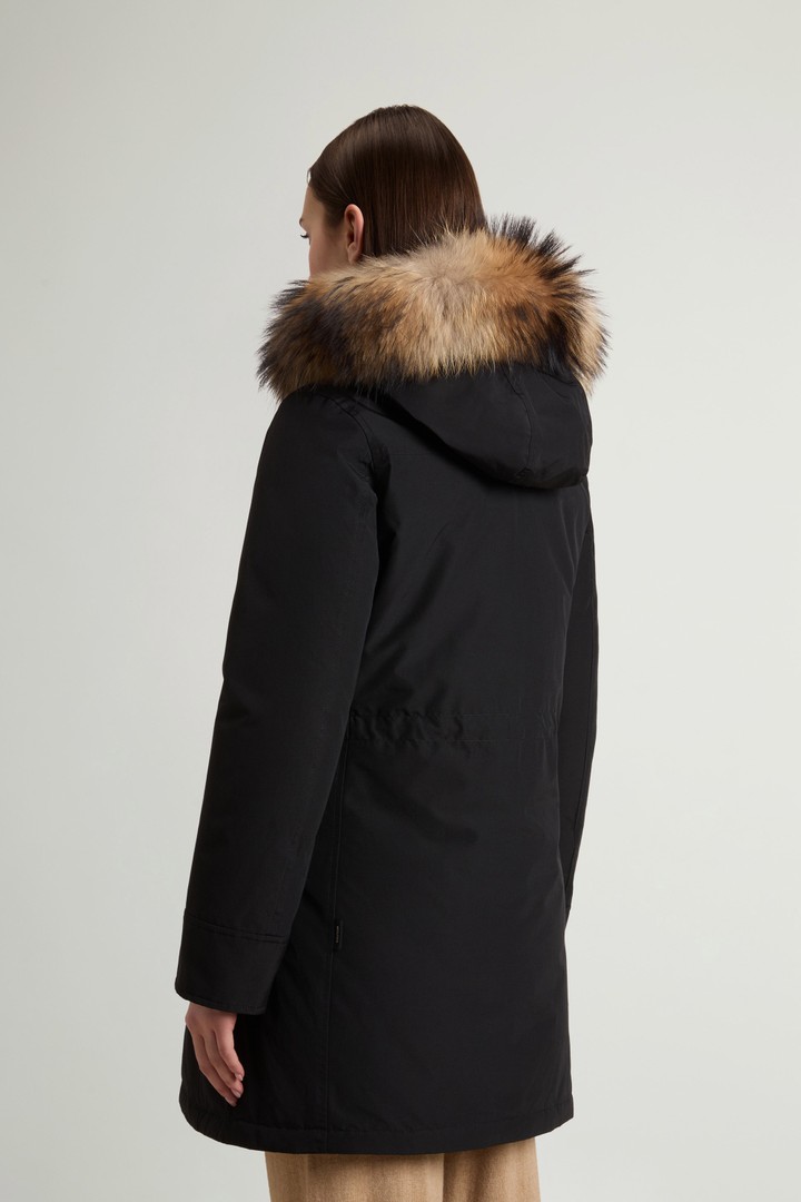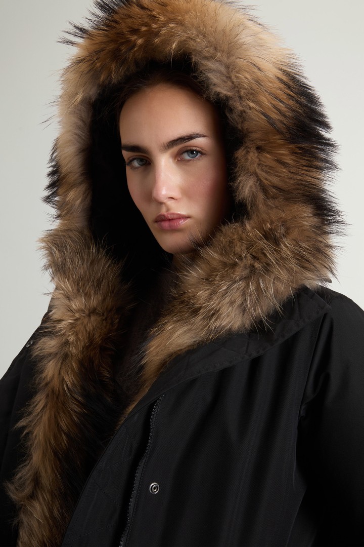 - Raccoon fur insert along the placket