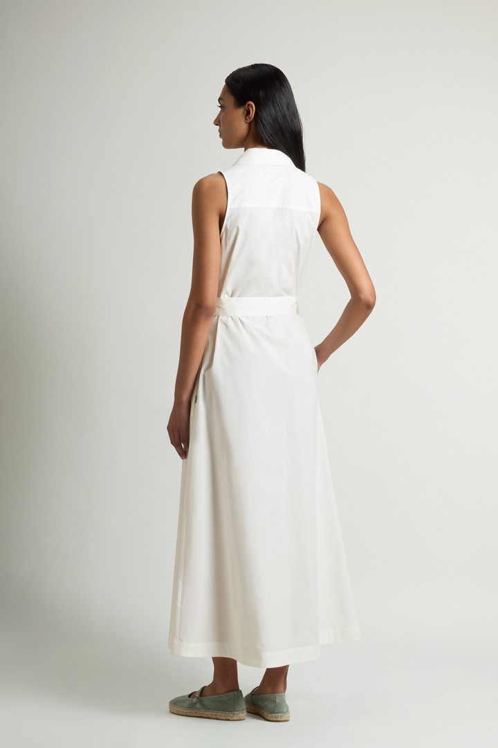 Este vestido camisero de popelina de puro algodón interpreta una estética estructurada, realzada por un tejido ligero y compacto. La popelina mantiene una caída ordenada, ofreciendo frescura durante la temporada más cálida. El cuello de camisa y el cierre con botones definen una línea clásica, con el cinturón en la cintura que permite ajustar la silueta. La etiqueta lateral con el logotipo completa el diseño.