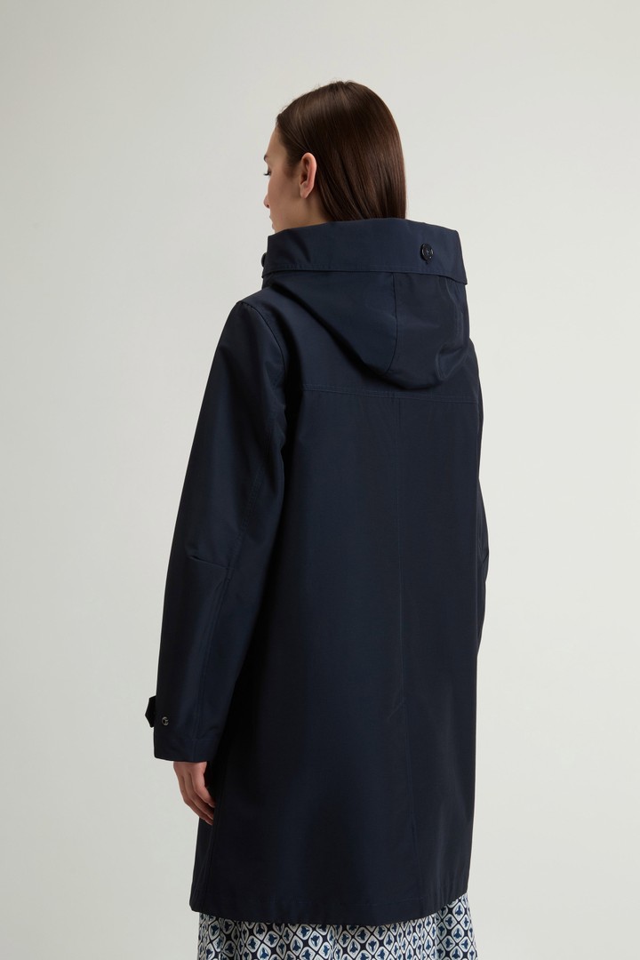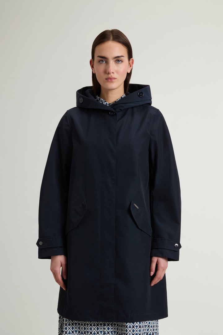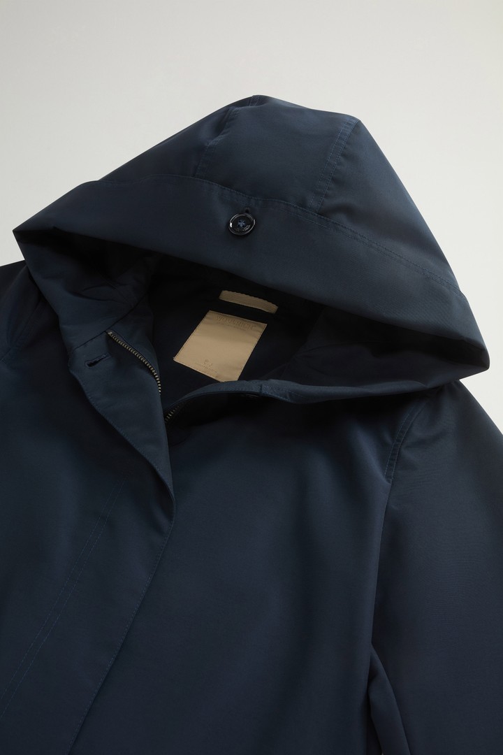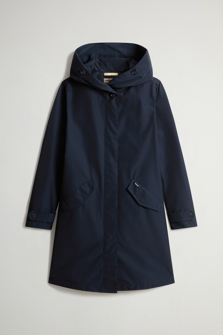 This parka offers a fresh take on a functional Woolrich classic with a lighter summer-ready version. It’s made from two-layered Ramar Cloth, a fabric designed to offer protection while maintaining comfort and breathability. The material is waterproof, windproof and breathable, ideal for braving changeable weather without weighing the wearer down. The hood and flap-concealed snap-button and zipper fastening at the front offer effective protection, while the side pockets with flap lend functionality. The adjustable cuffs with buttons allow you to adapt the fit. The metal tag on the left pocket and label on the side give the garment a discreet, recognizable finishing touch.