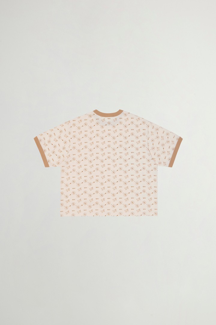 Made from jersey, whose organic pure cotton is of Indian origin, this Ringer T-shirt from the Outdoor Label Designed in Japan collection retains the natural color of the yarn, without additional treatments. The collar and sleeves with reinforced ribbed edging preserve its shape over time, while the all-over print with tone-on-tone Woolrich logos echoes the brand's heritage with a light graphic touch. The fabric is designed to develop character as you use and wash it, making the garment a versatile option you can wear alone or as part of a layered look throughout the year.