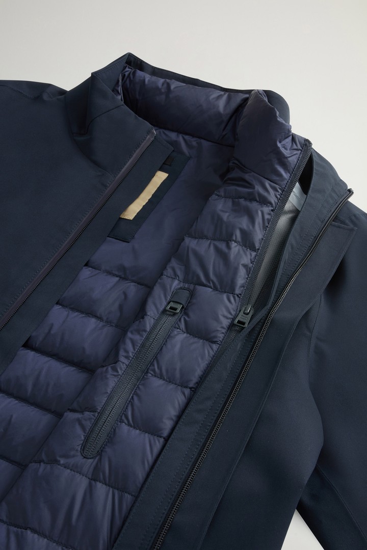 This multifunctional jacket is suitable for any season thanks to its 2-in-1 design, comprising an outer jacket and removable inner vest. Made from waterproof, wind-resistant and breathable two-layered fabric. The fully taped seams and stand-up collar with logo provide extra protection from the wind and rain, while the flap-concealed two-way zipper fastening delivers maximum comfort and protection. The zippered patch pockets at the sides and inner pocket with zipper offer secure space for your personal items. The rear slit with snap button makes it even more flexible. The removable inner vest features horizontal quilting and duck down padding for extra warmth on cold days.