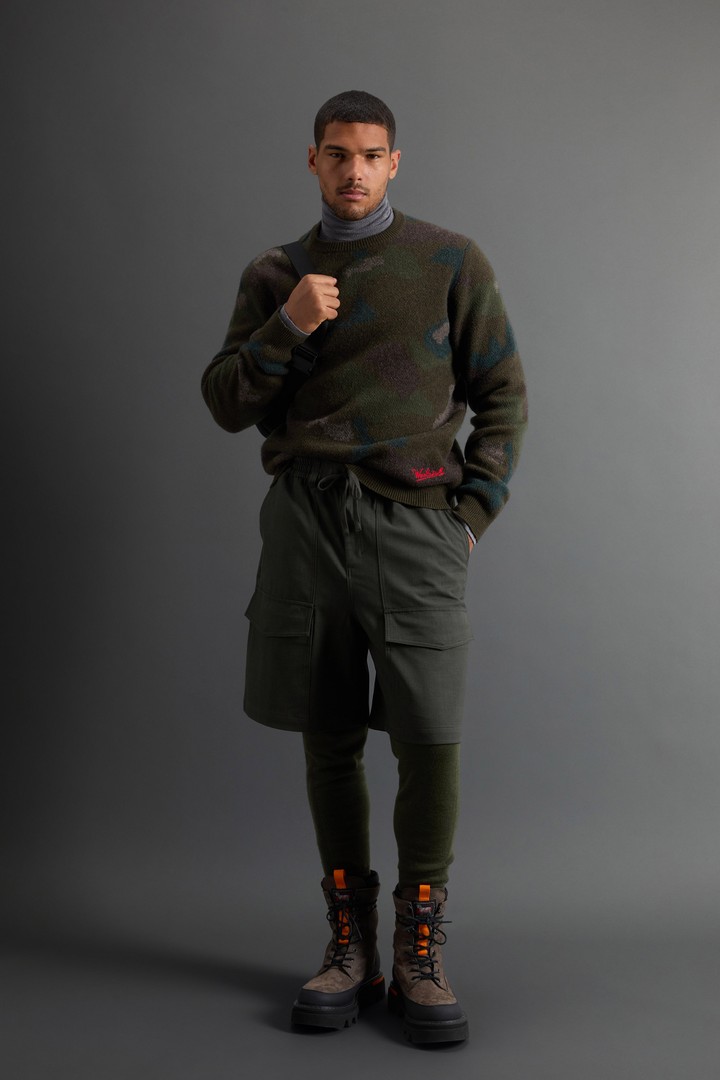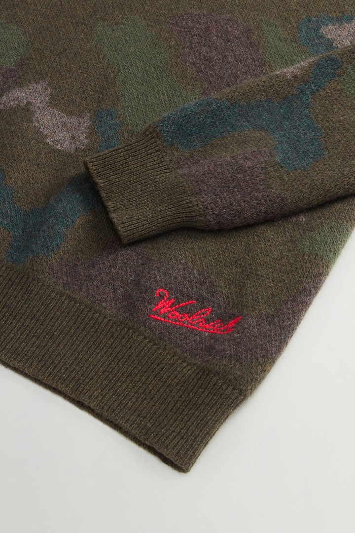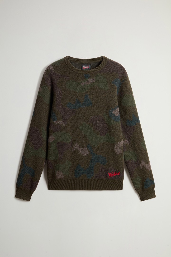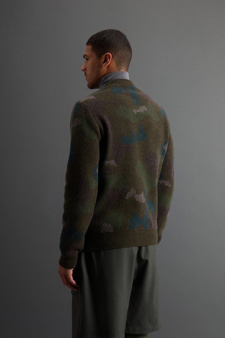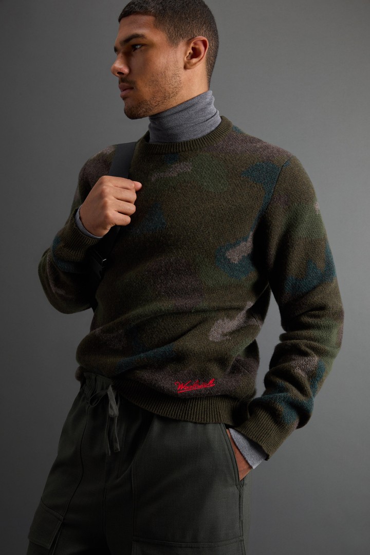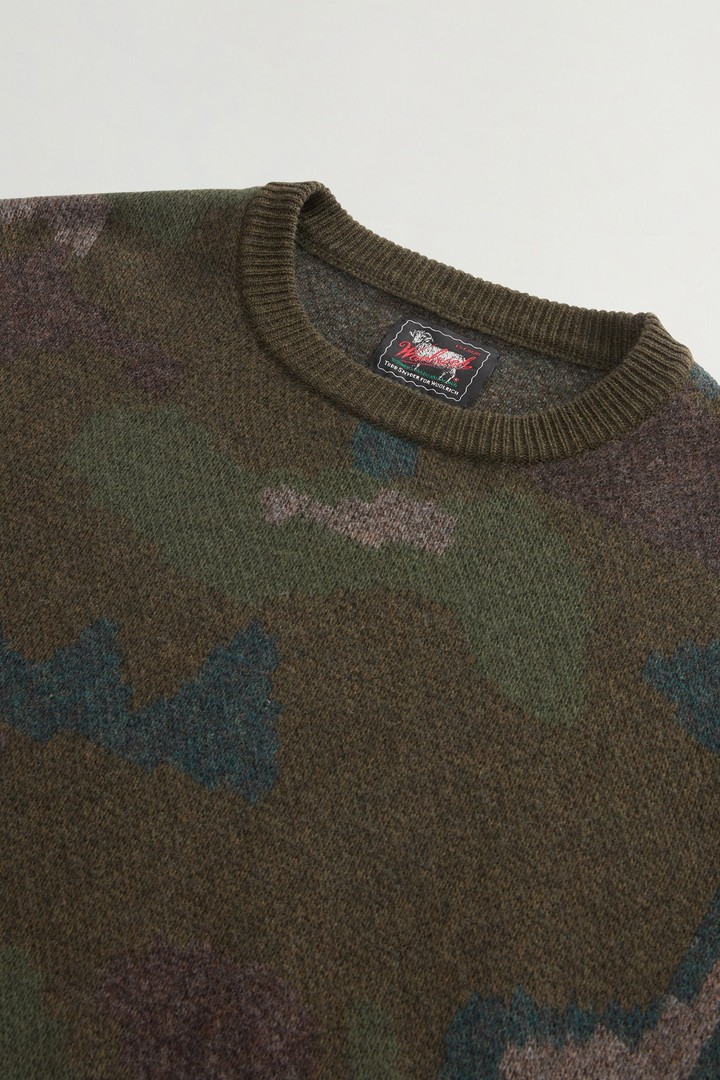 Crewneck Sweater in Pure Lambswool with Camouflage Motif
