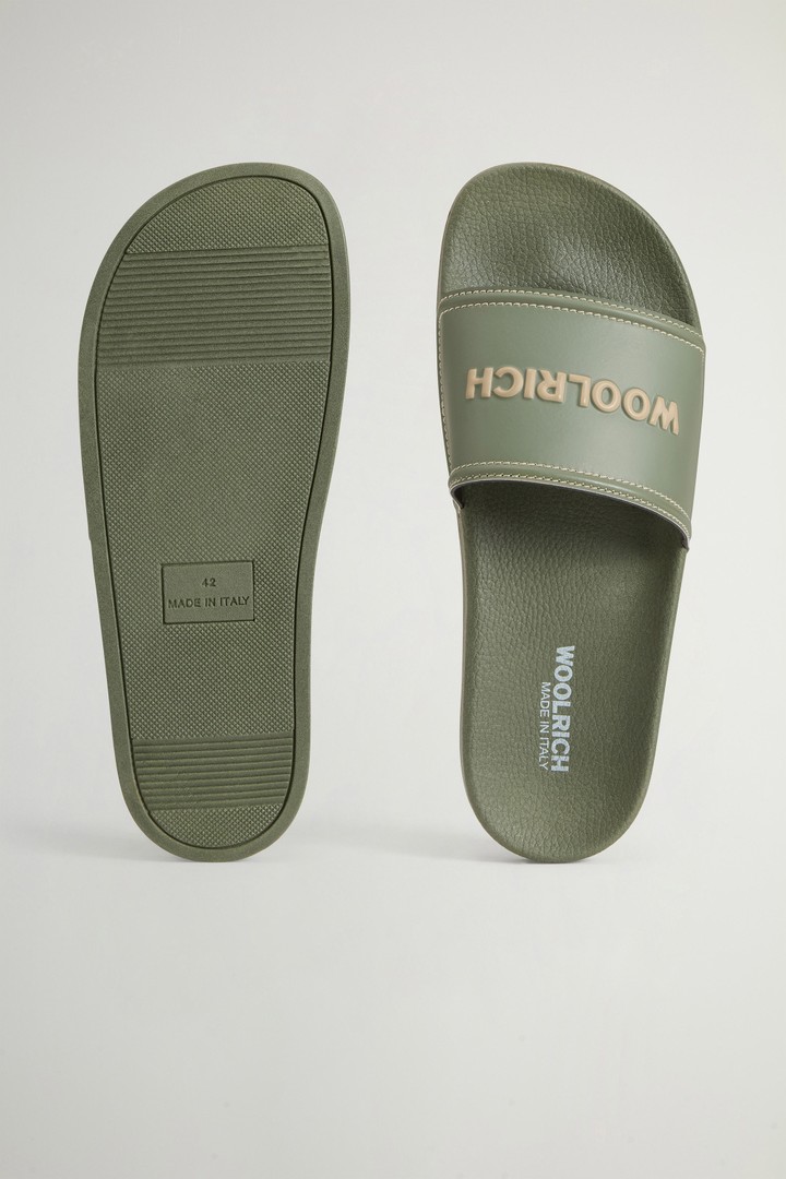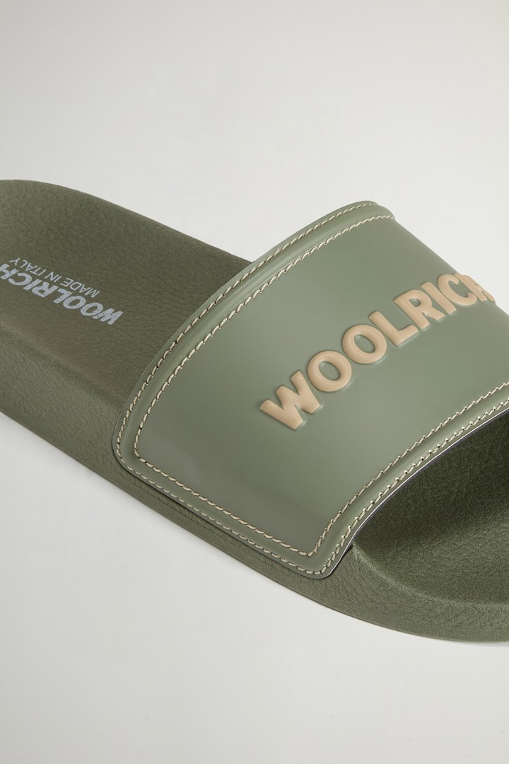 Made in Italy, these natural rubber Slide sandals offer a fresh take on a summer essential with clean, modern style. The lightweight structure is accompanied by a molded footbed designed to provide comfort and stability when worn. The band with contrasting stitching adds a subtle graphic touch, while the non-slip sole ensures grip. The raised Woolrich logo gives the model a vibrant, recognizable signature detail.