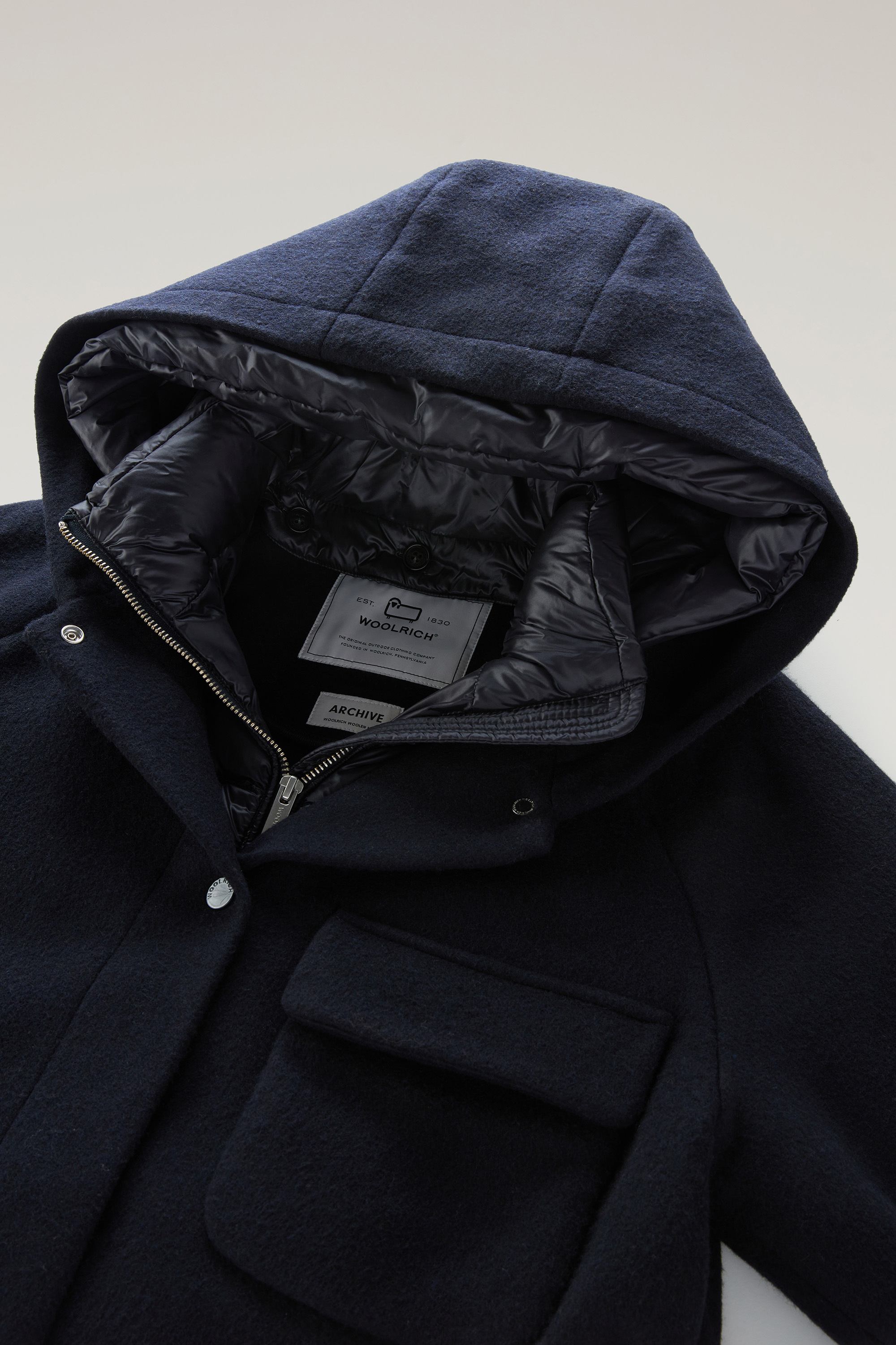 The Sideline parka is functional yet sophisticated, a reliable ally for winter months, comfortable and versatile. Inspired by an archive model, it is made from a recycled Italian Manteco wool blend, the innovative Mwool. It comes with a bib with a hood made from nylon and padded with duck down to add extra protection and a casual touch. It closes with a series of hidden snap buttons and two visible buttons and has a series of convenient flap pockets: one on the chest and two at the bottom.
