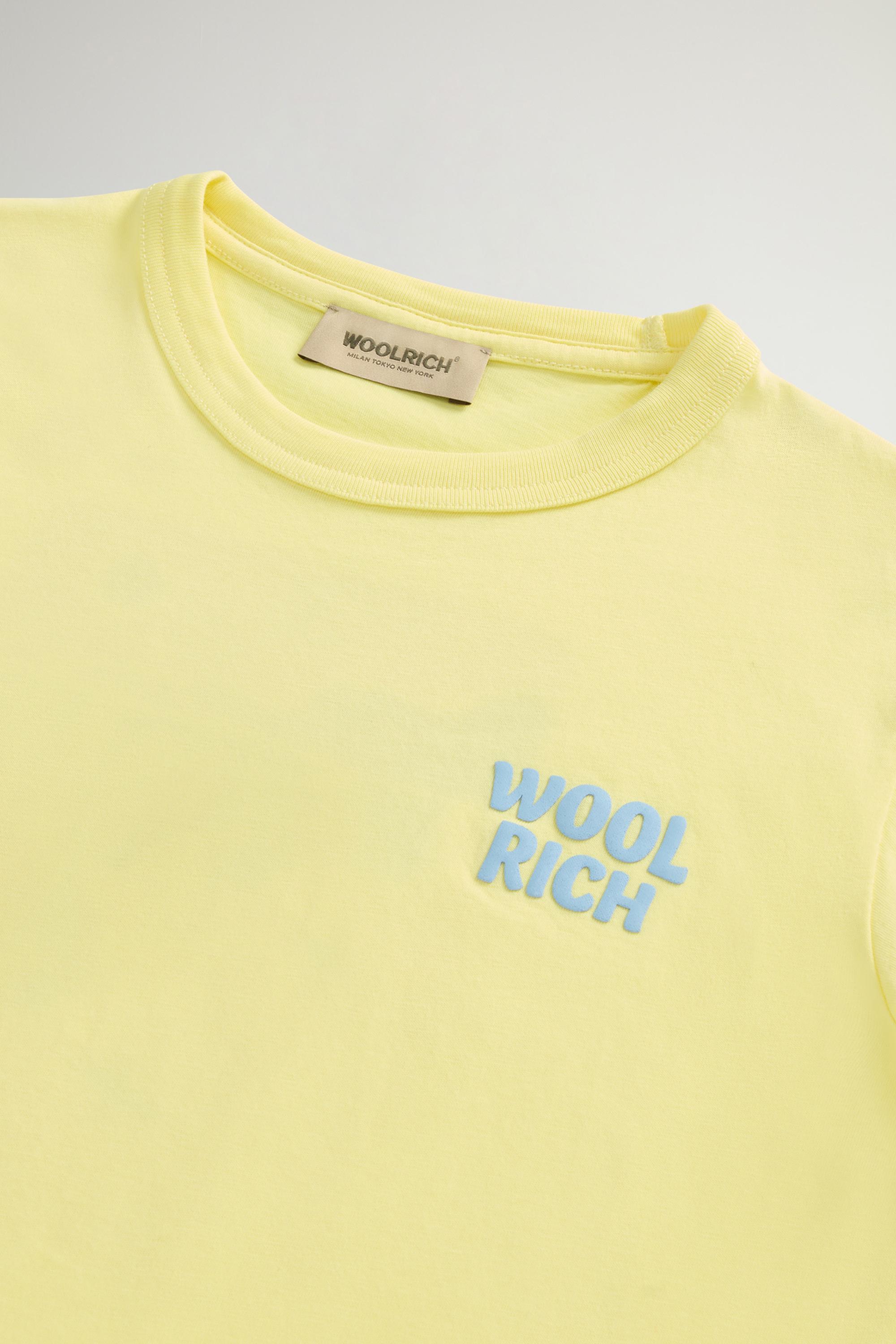 Fresh, soft and comfortable, this pure cotton jersey T-shirt is the ideal choice for your boy to wear at any time of day. It has a ribbed collar, and the printed Woolrich logo on the chest adds a distinctive edge. The summer landscape-inspired print on the back enhances the design, providing a vibrant, original touch.