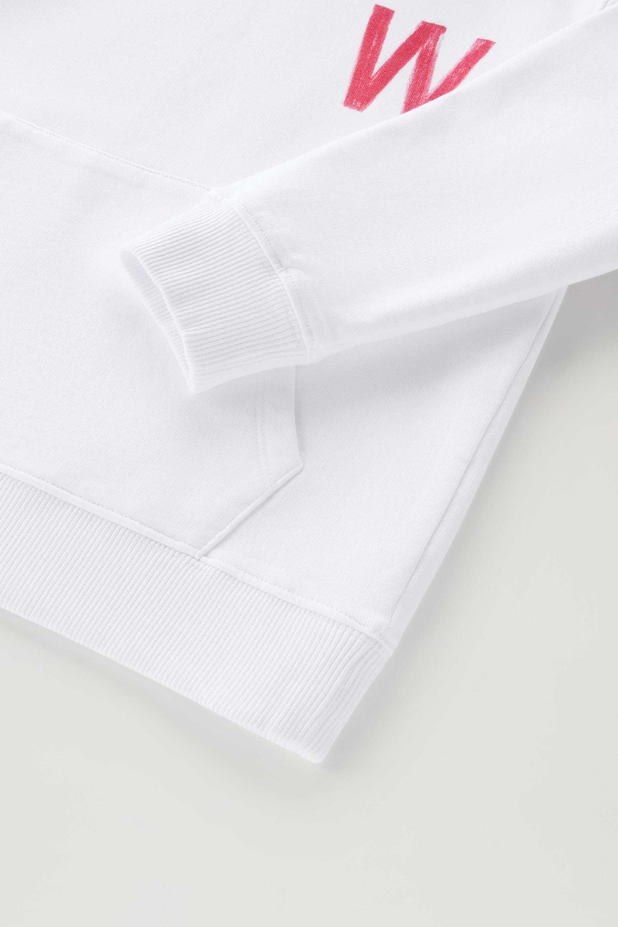 With a hood and handy kangaroo pocket, this sweatshirt is perfect for outdoor adventures. The boys' model has a comfortable fit with dropped shoulder sleeves and ribbed trims that define its design. Made from cotton fleece that feels soft against the skin and features a water-based "W" print with a light watercolor effect and marine-inspired graphics on the back.