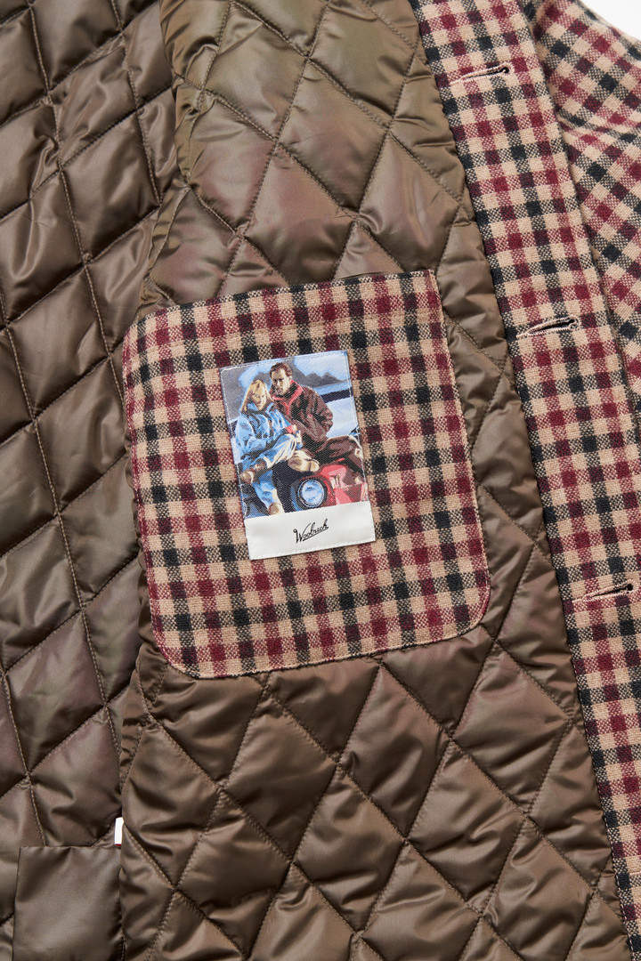 A seasonal classic, this vintage-inspired jacket from the Outdoor Label Designed in Japan collection is a versatile piece suitable for both your casual and slightly more formal looks. Drawing inspiration from Woolrich archive models from the '80s and '90s, it's crafted from recycled wool tweed and features the classic pointed collar with a tab to fasten it when pulled up. The lining is diamond-quilted and padded with PrimaLoft® for added warmth. It boasts a hidden zip closure and a range of functional pockets: four with flaps and brass snap buttons, two handwarmer pockets, one at the back, and an internal pocket with a vintage label. The inner cuffs are ribbed to shield you on windier days.