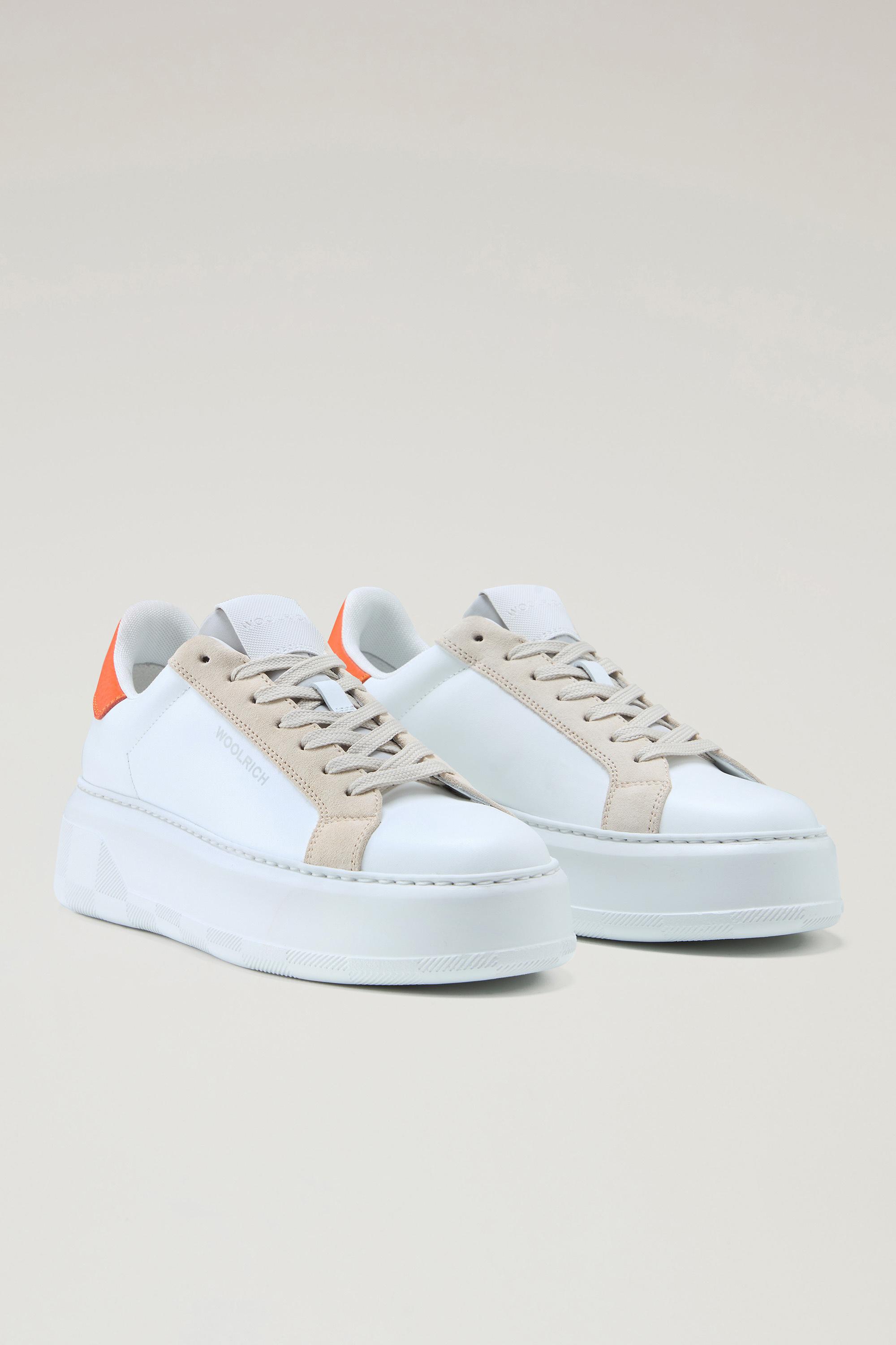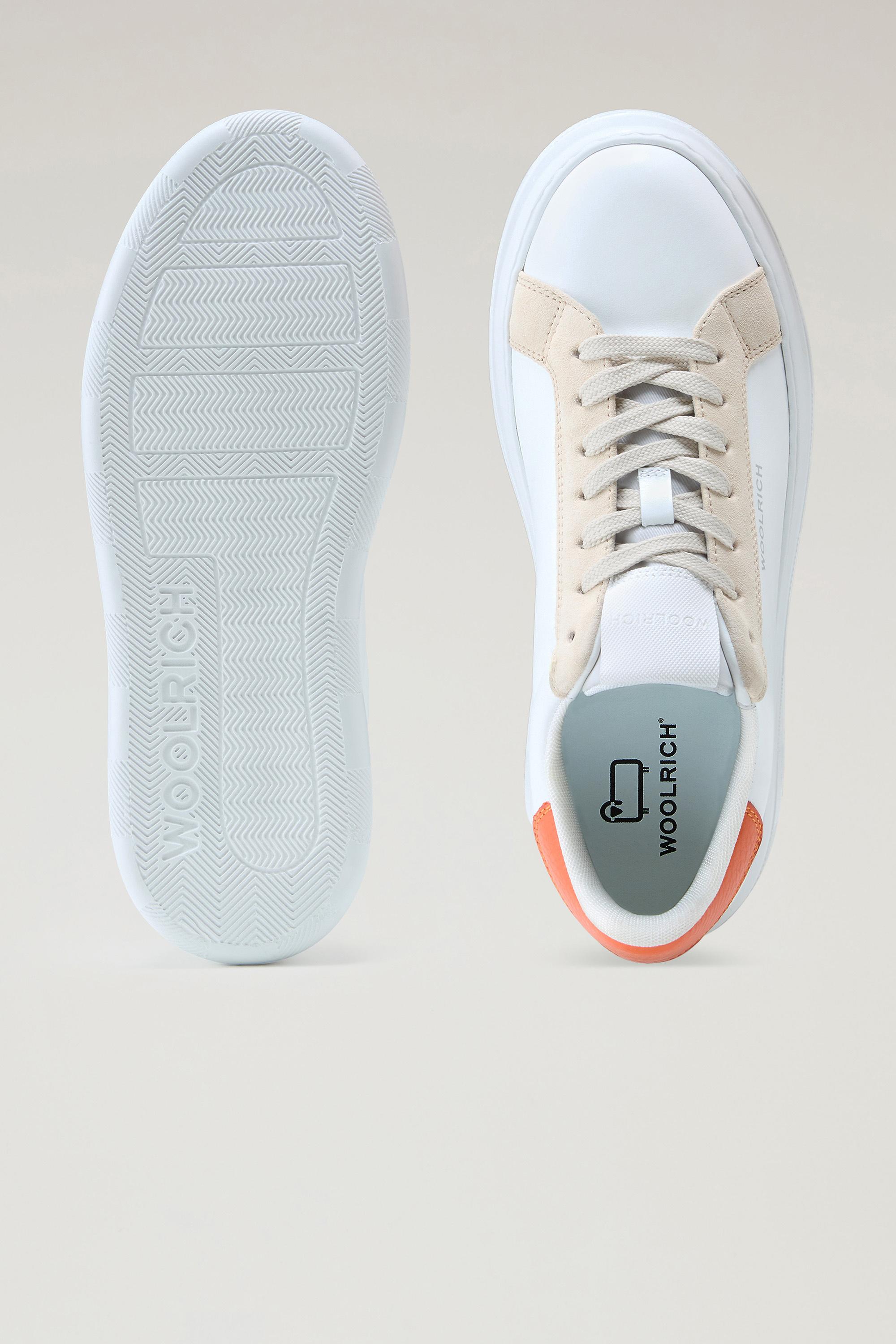 These trendy Made in Italy sneakers are made from calfskin leather. The eyestay and tongue are in suede, while the backtab is in contrasting tumbled leather for a playful, distinctive touch. They have an extremely lightweight, low-density EVA platform outsole with Buffalo Check details. Woolrich lettering on the tread adds a unique touch to a model that is perfect for everyday wear.