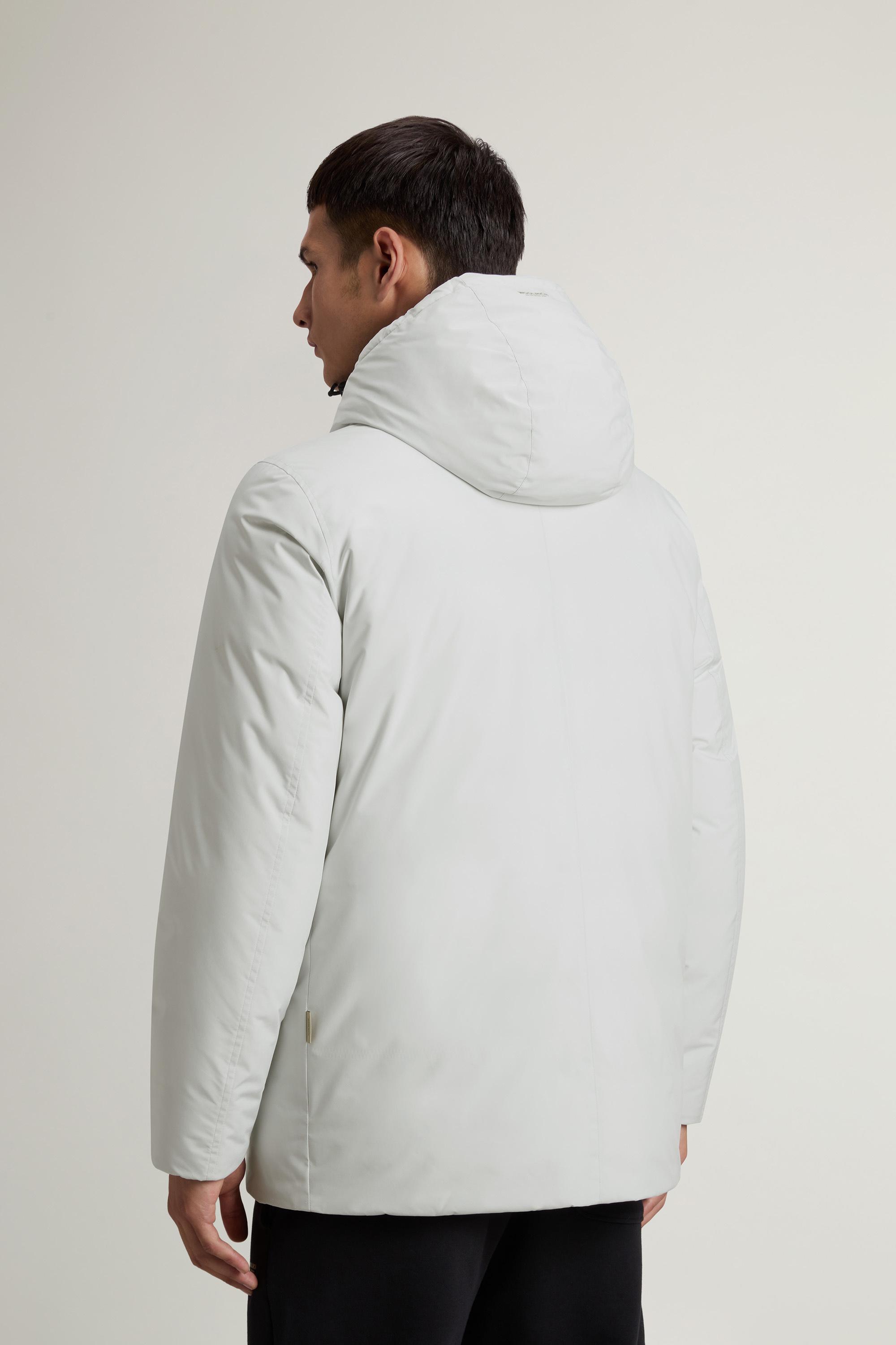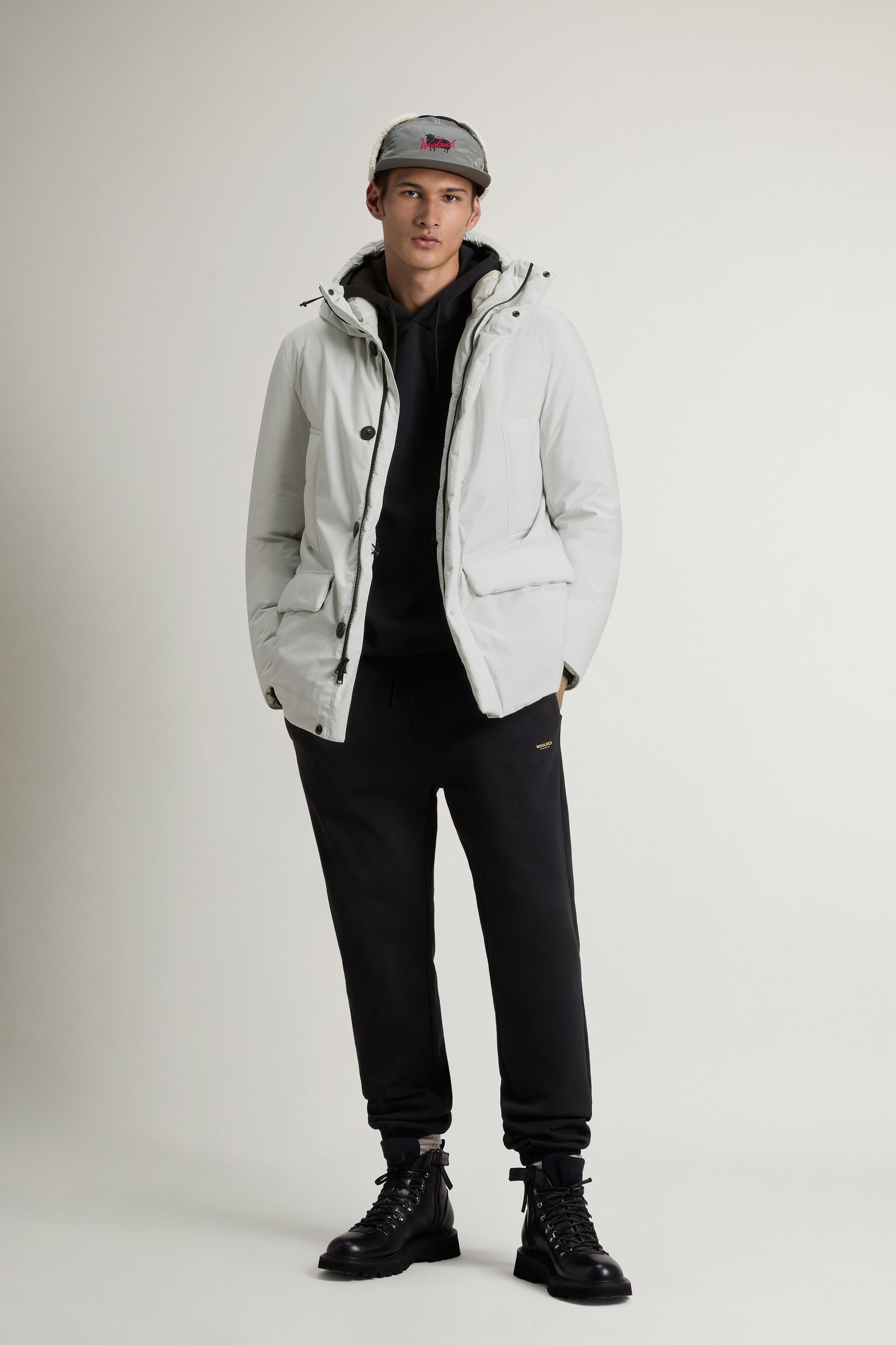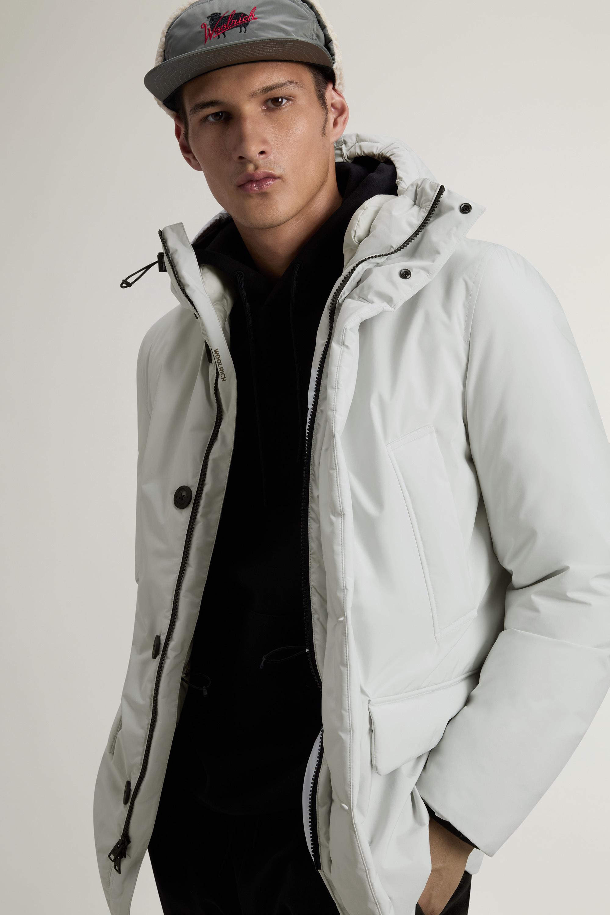 An iconic style reimagined for the Cloud Series—our capsule of outerwear that’s warm yet light as air. Designed to deliver comfort and protection in colder months, this parka combines technical performance with thoughtful detailing. Crafted from water-resistant, windproof, and breathable fabric and treated with a sustainable WR C0 water-repellent finish, it features a fixed hood with adjustable drawcord stopper and a two-way zipper hidden under a snap-button storm flap. Snap closures at the stand-up collar and hem are concealed for a seamless look. The interior features a branded drawcord for a customizable fit. Iconic front pockets include two chest hand-warmer pockets and two lower flap pockets with hidden zips and snap closures. A zippered interior pocket, rib-knit inner cuffs, and printed hood logo complete the look.