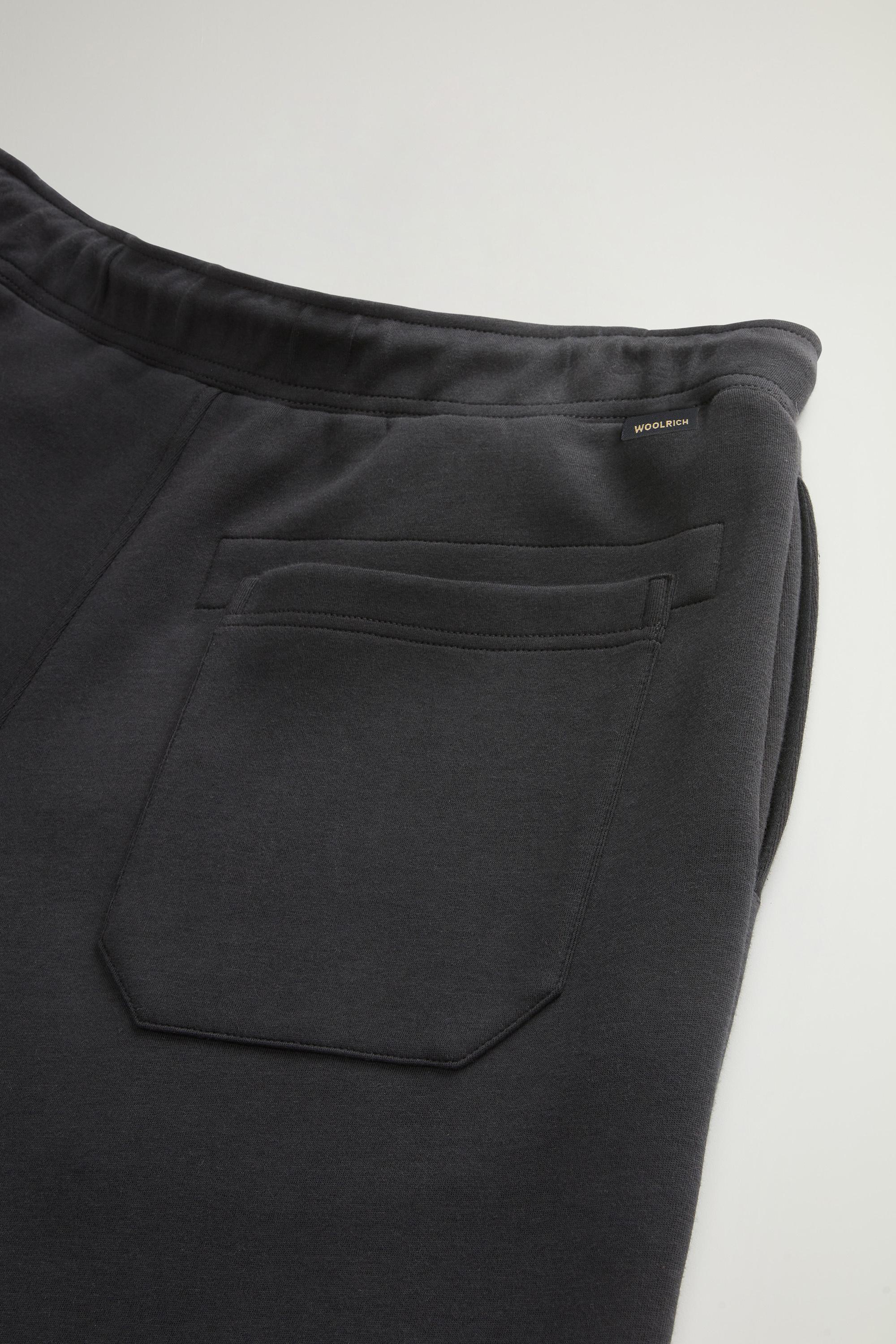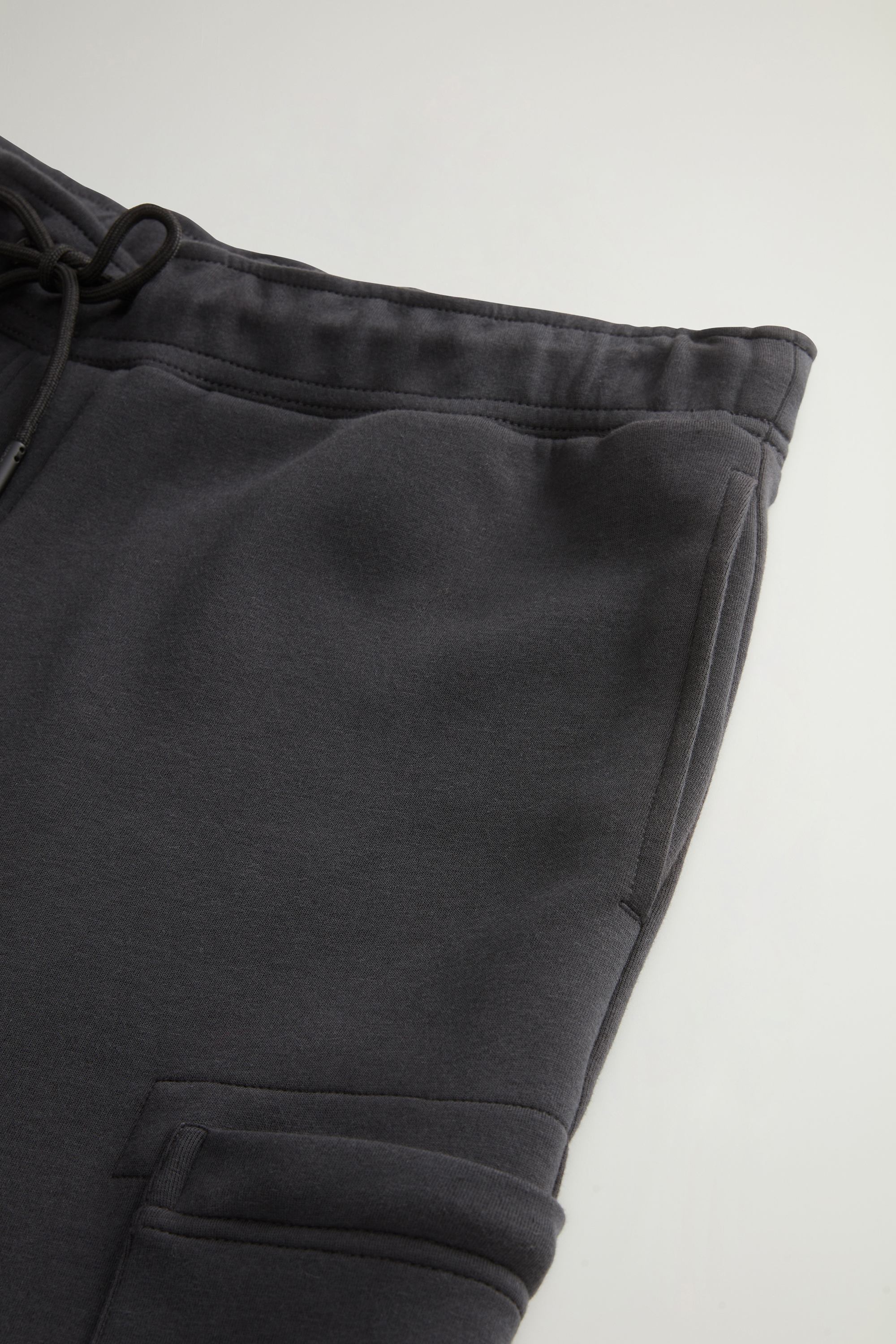 Made from a cotton blend fleece, these pants are the secret to an informal and comfortable look. They have a drawstring waist that allows you to adjust their fit, two side pockets with zipper and two patch pockets with zipper, one on the leg and the other on the back. The elasticated ankle cuffs provide a comfortable fit. The printed Woolrich lettering is the detail that makes this garment exclusive and personalized.