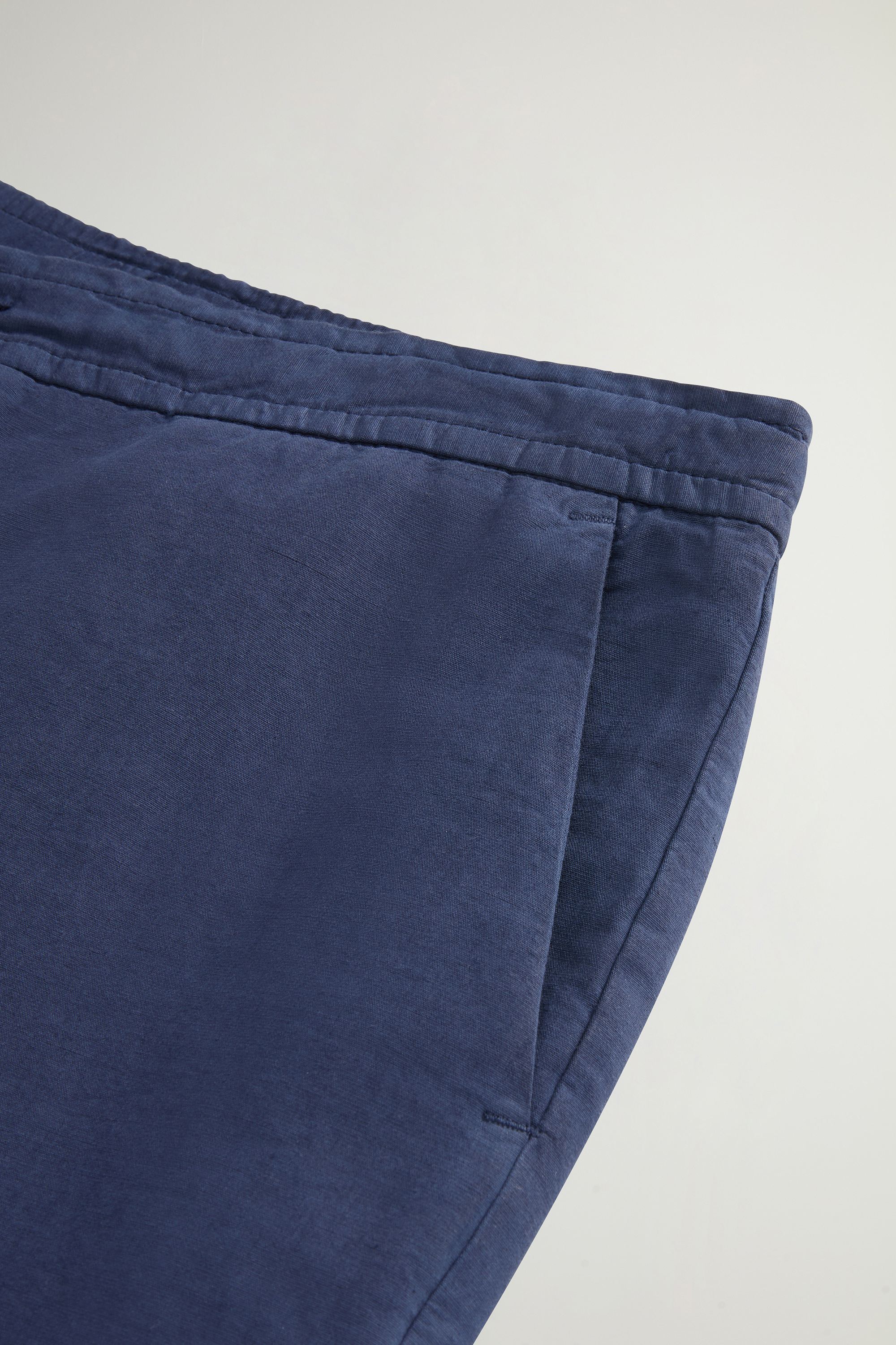 These garment-dyed cotton- and linen-blend pants boast a classic design and accommodating fit. Ideal to pair with a shirt or T-shirt for a more casual look, these have an elasticated waist insert and inner drawstring that allow you to adapt the fit to your needs. The four welt pockets—two at the front, two at the back—provide functionality. The dyeing method makes each garment distinct, so the color may vary from the photo.