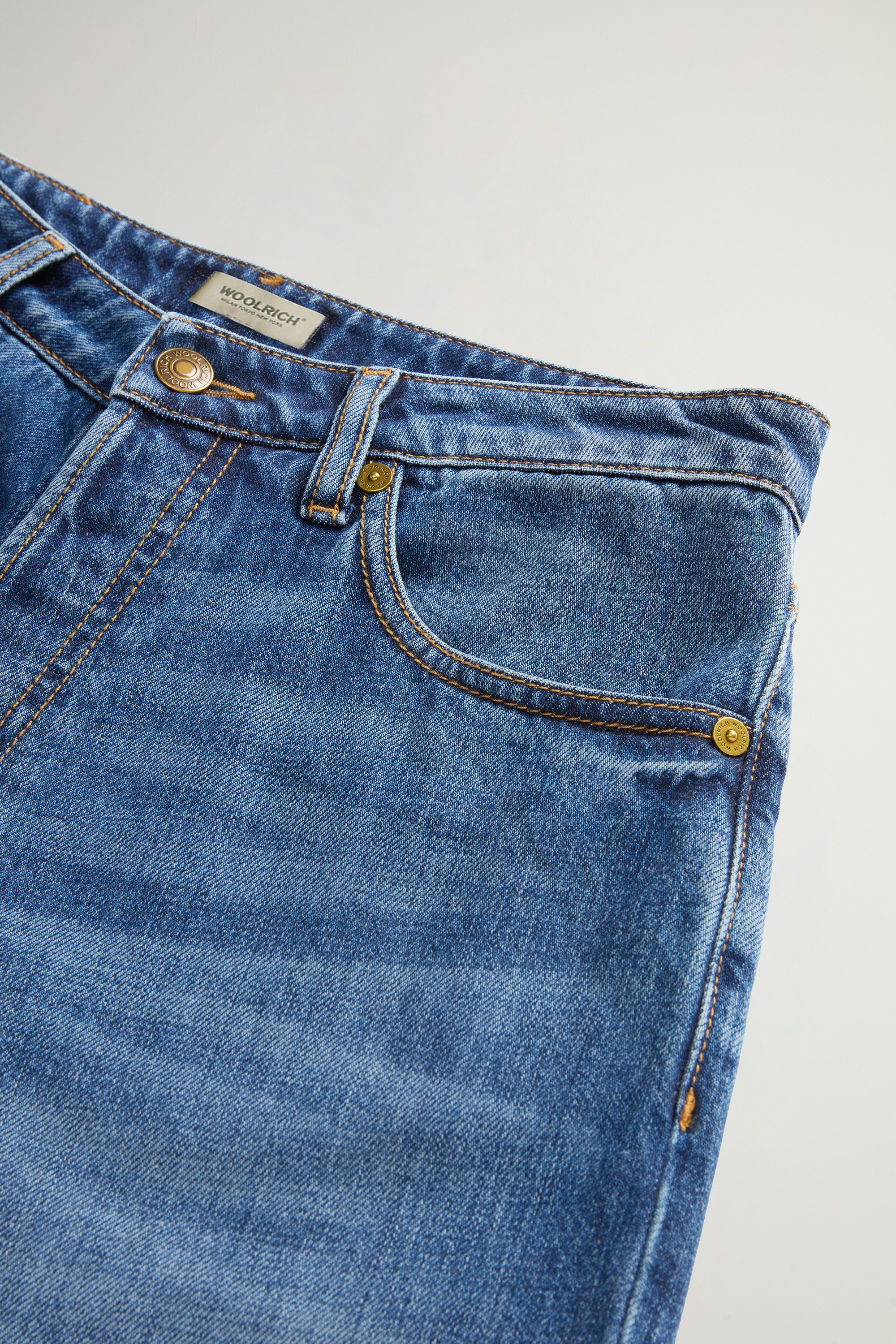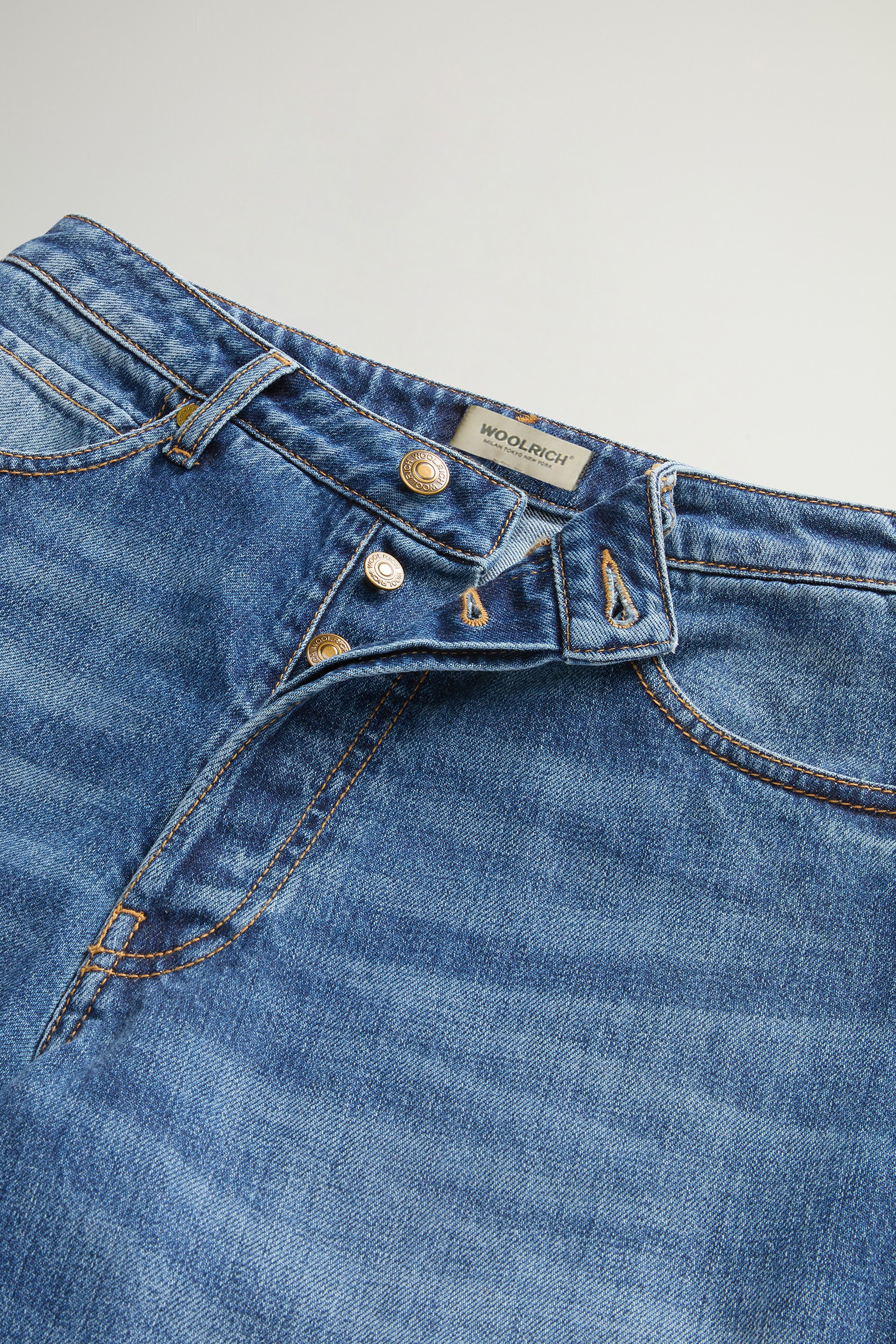 A classic that never goes out of style, these high-waisted jeans are a five-pocket style with belt loops at the waist and a concealed zipper and button fastening. The patch with Woolrich logo on the back gives the garment a distinctive touch. The dyeing method makes each garment exclusive, so the color may vary from the photo.