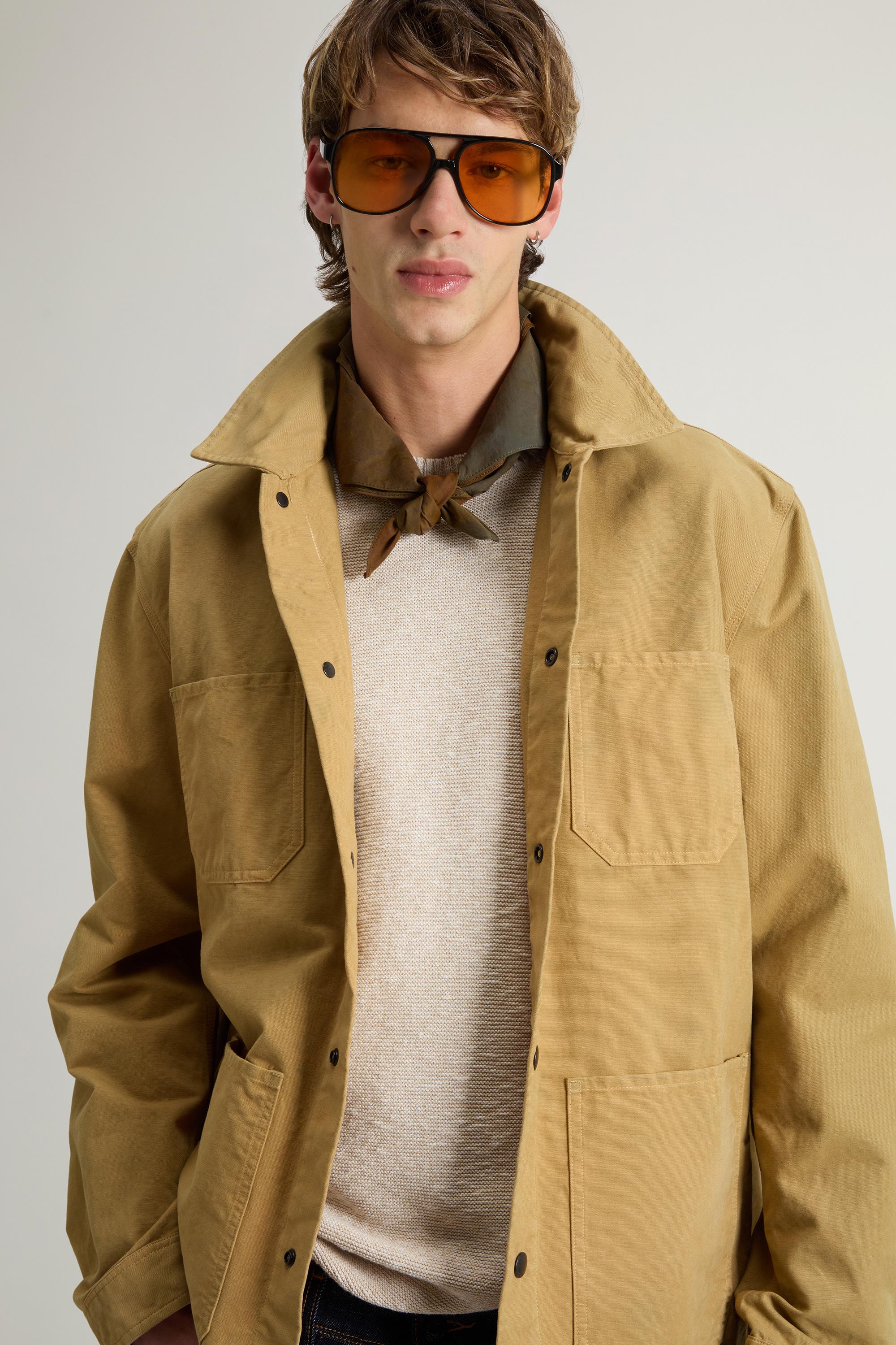 This garment-dyed pure cotton canvas overshirt combines style, comfort and practicality. It features a classic collar, snap-button fastening and two upper and lower patch pockets that provide a touch of workwear-inspired functionality. The dyeing method makes each garment exclusive, so the color may vary from the photo.