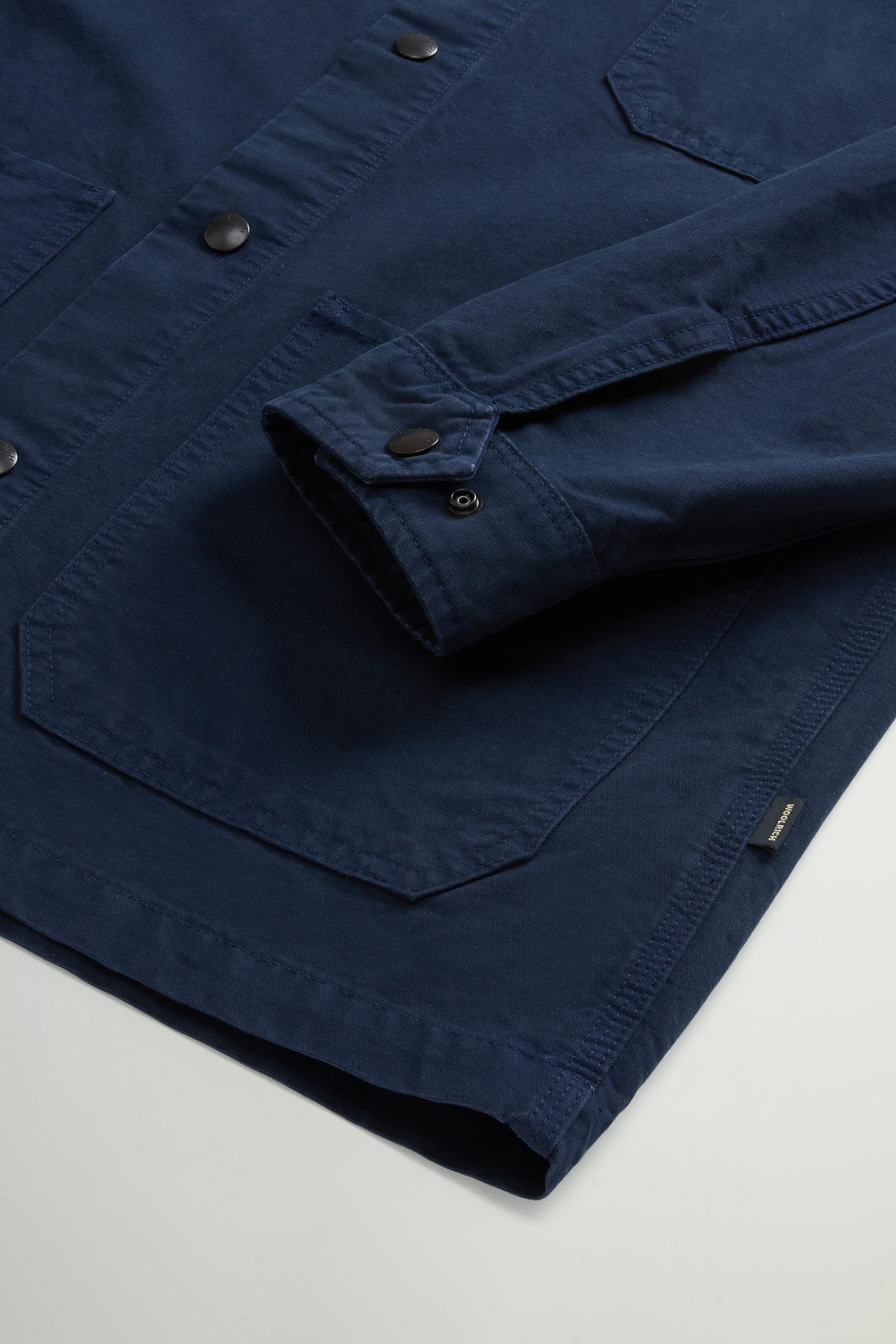 This garment-dyed pure cotton canvas overshirt combines style, comfort and practicality. It features a classic collar, snap-button fastening and two upper and lower patch pockets that provide a touch of workwear-inspired functionality. The dyeing method makes each garment exclusive, so the color may vary from the photo.