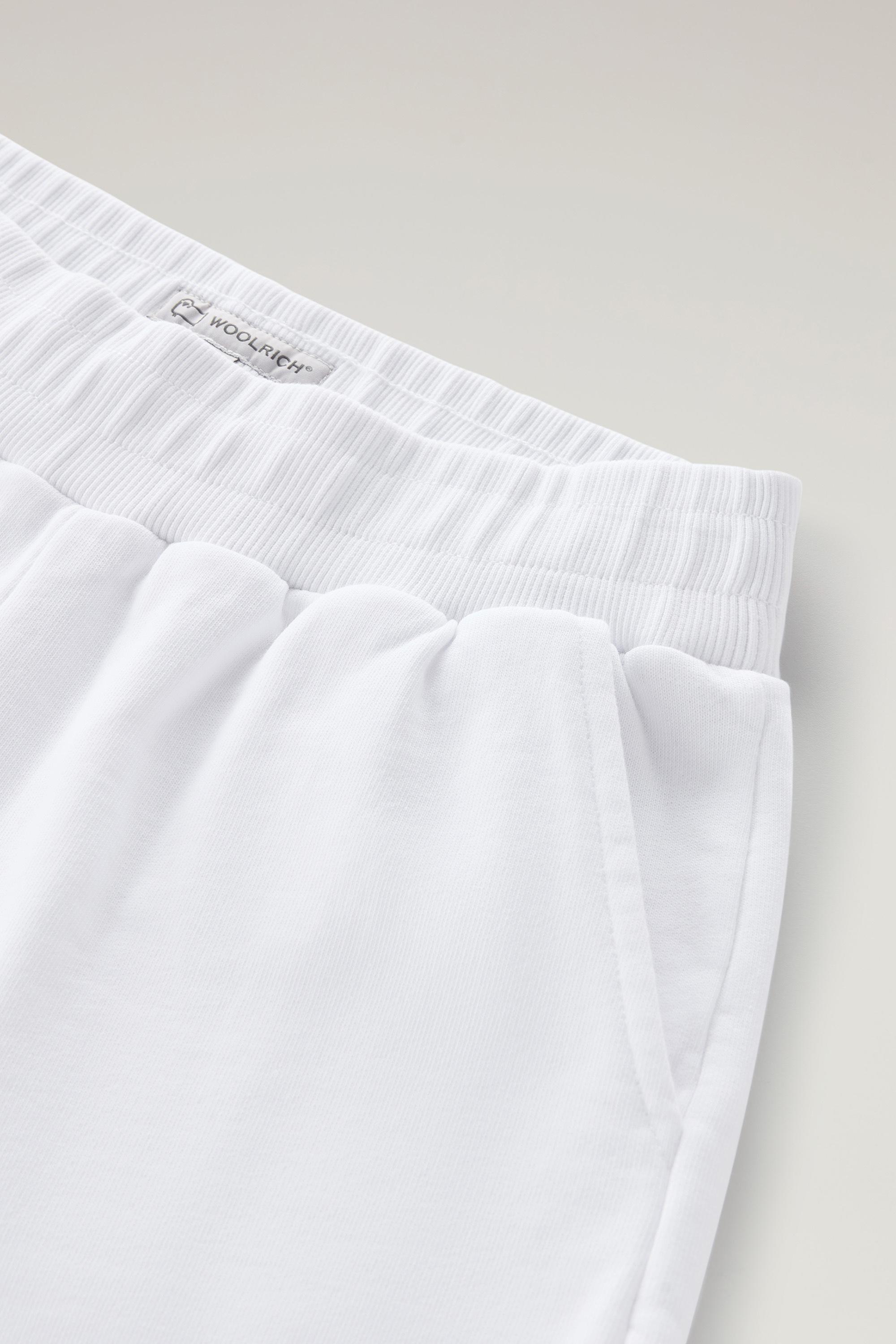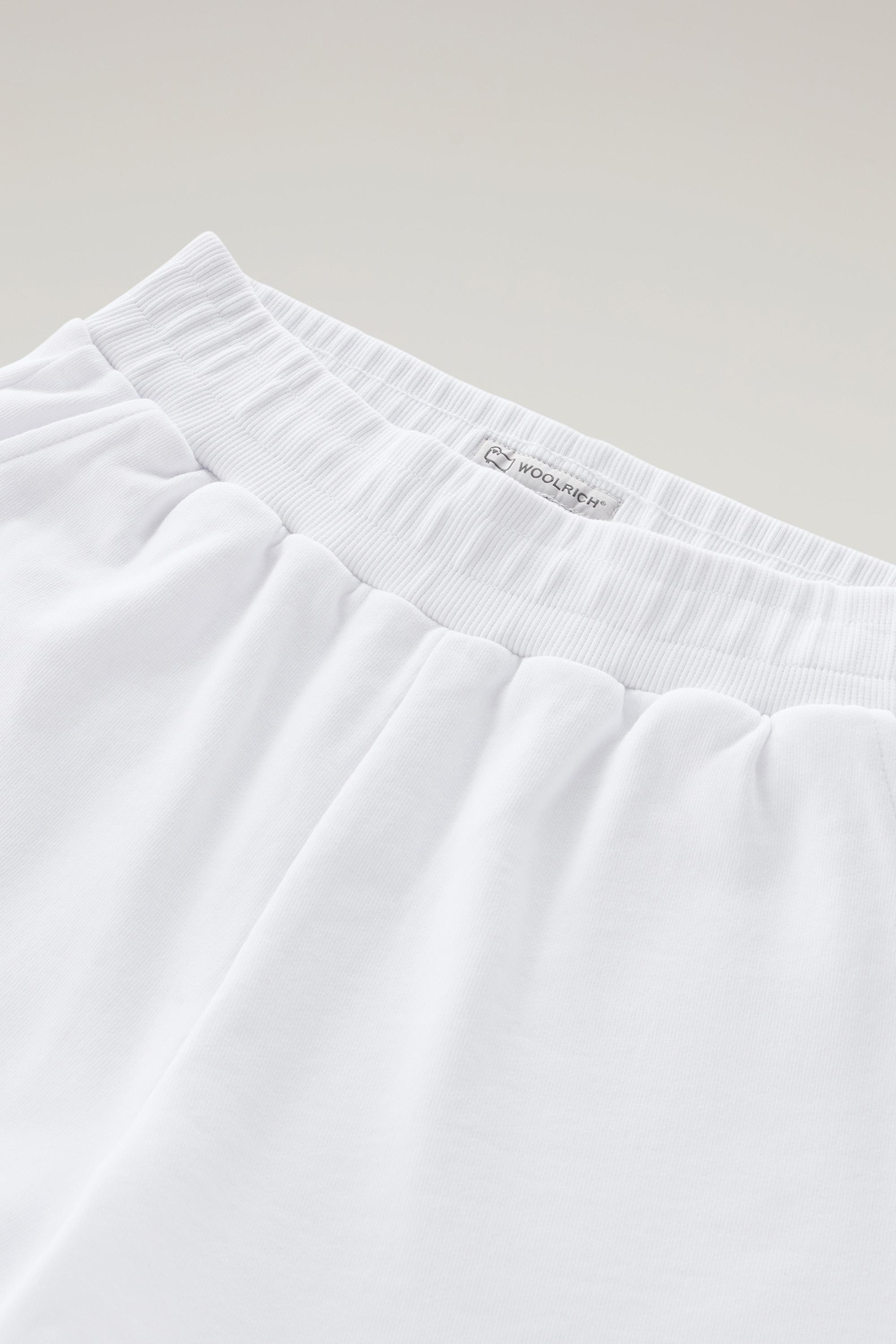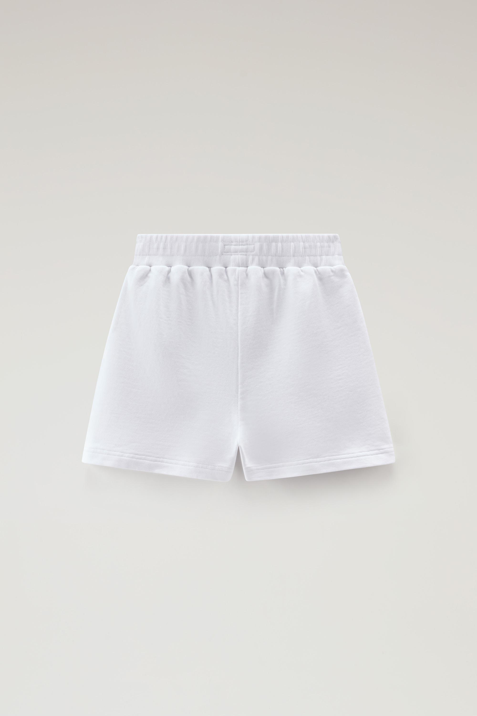 These sports shorts are made from pure cotton fleece, and are lightweight and soft in contact with the skin. Perfect for play and leisure, this girls' model is comfortable to wear thanks to the elasticated waist insert and the wide leg with side pockets. The embroidered Woolrich lettering is the precious touch that gives the look personality.