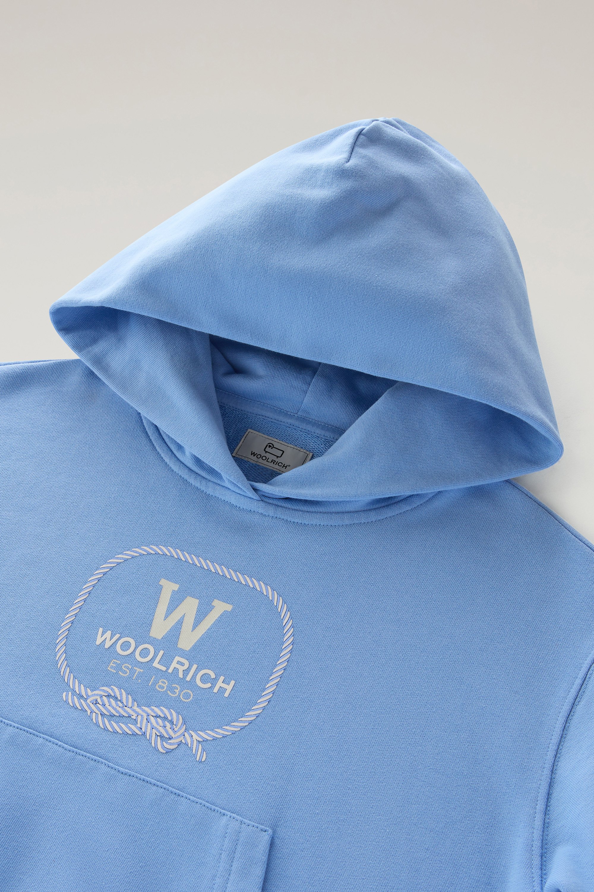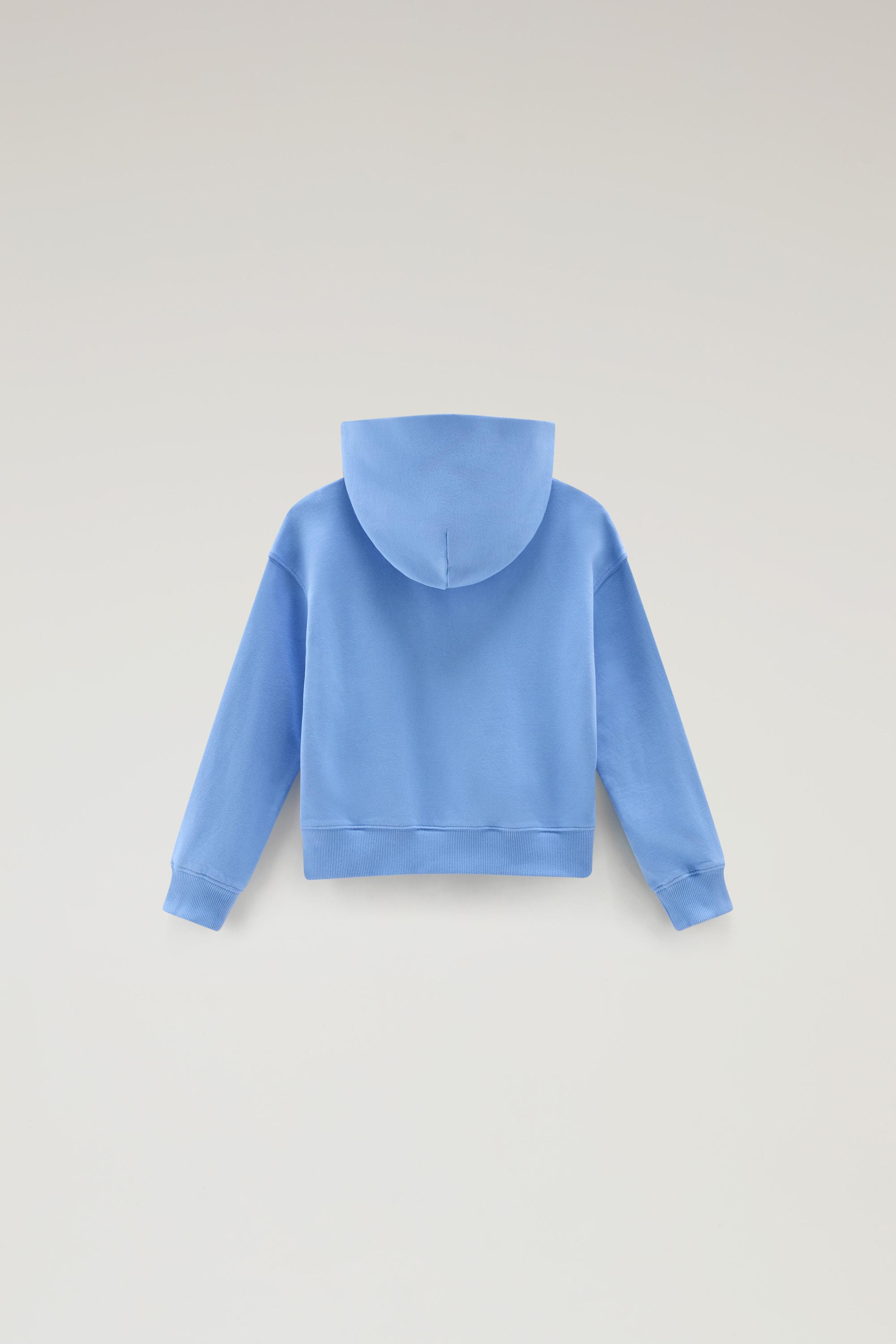 The Woolrich sweatshirt designed for girls, perfect to wear at school and during leisure time. The model features a comfort fit with a hood, a kangaroo pocket, and wide sleeves with dropped shoulders. Made from pure cotton that feels soft on the skin, it is finished with a fun mix of prints and embroidery on the front.