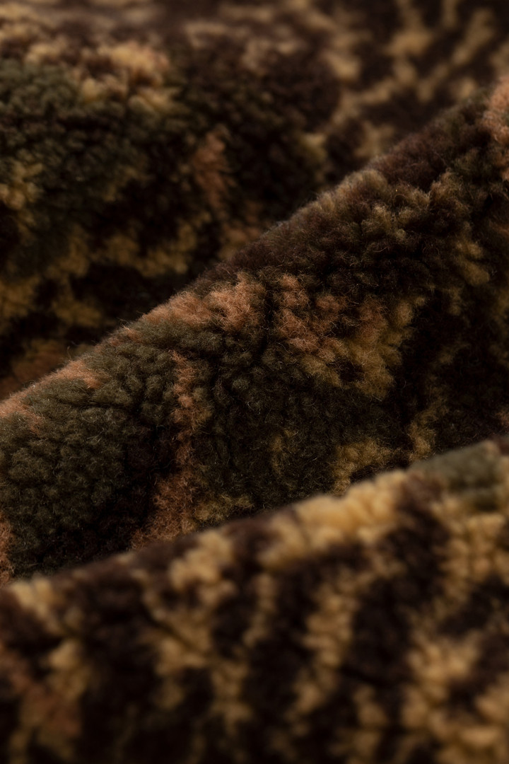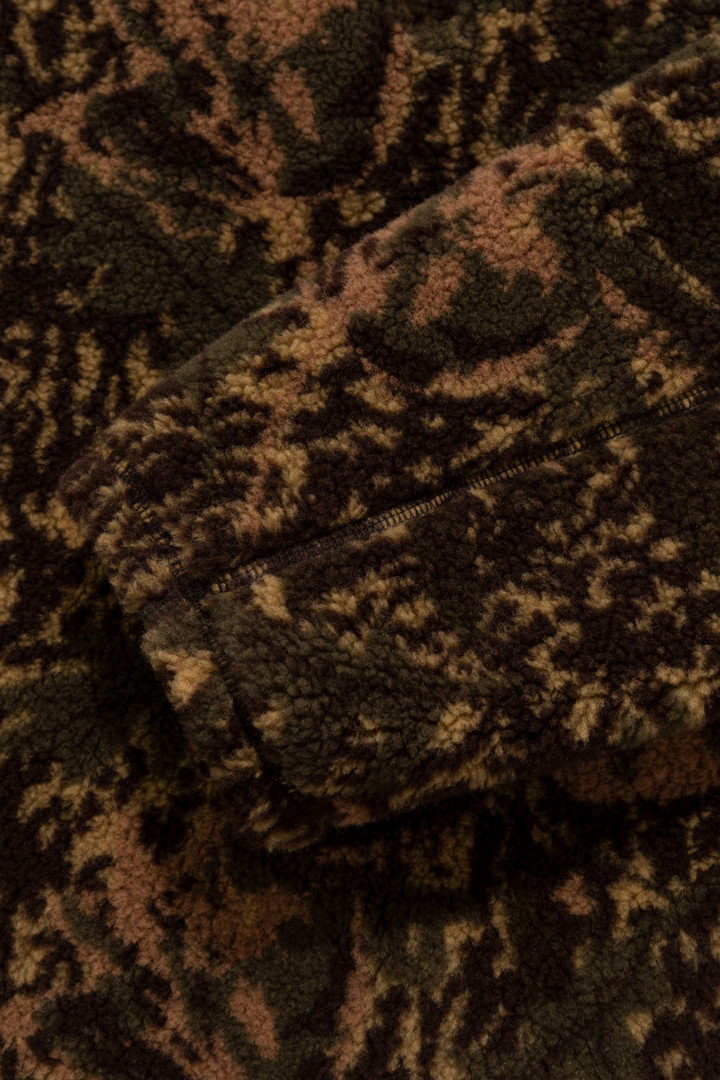 This wool-blend fleece was designed in collaboration with Aimé Leon Dore. It has a high collar, a half zip closure, and elasticated cuffs and hem.