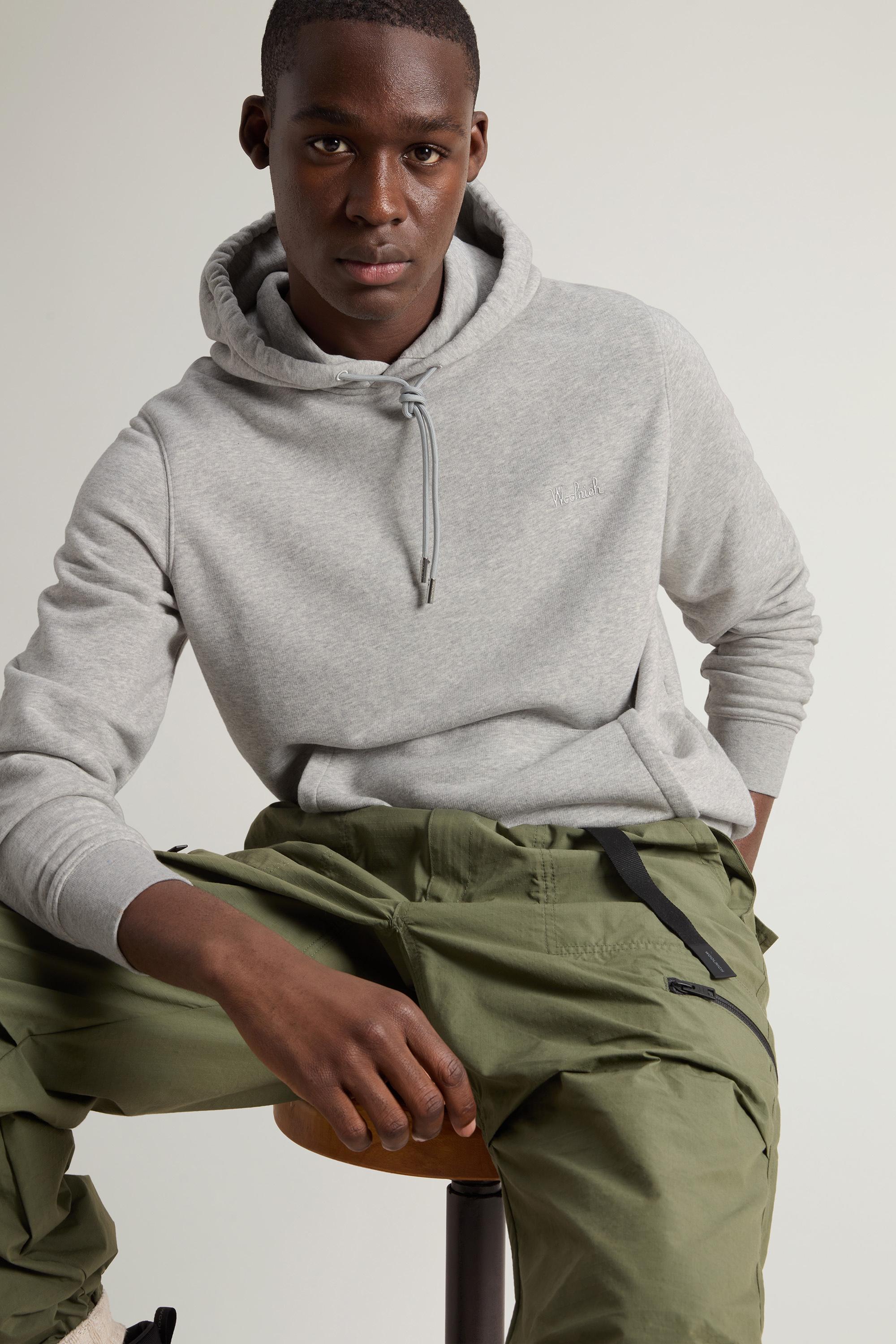 Woolrich reinterprets the classic sweatshirt with a texture in a high-quality cotton fleece that is soft on the skin. The model has a comfortable pouch pocket, hood with drawstrings and logoed ends. The embroidered lettering on the chest is the refined touch that personalizes the look.