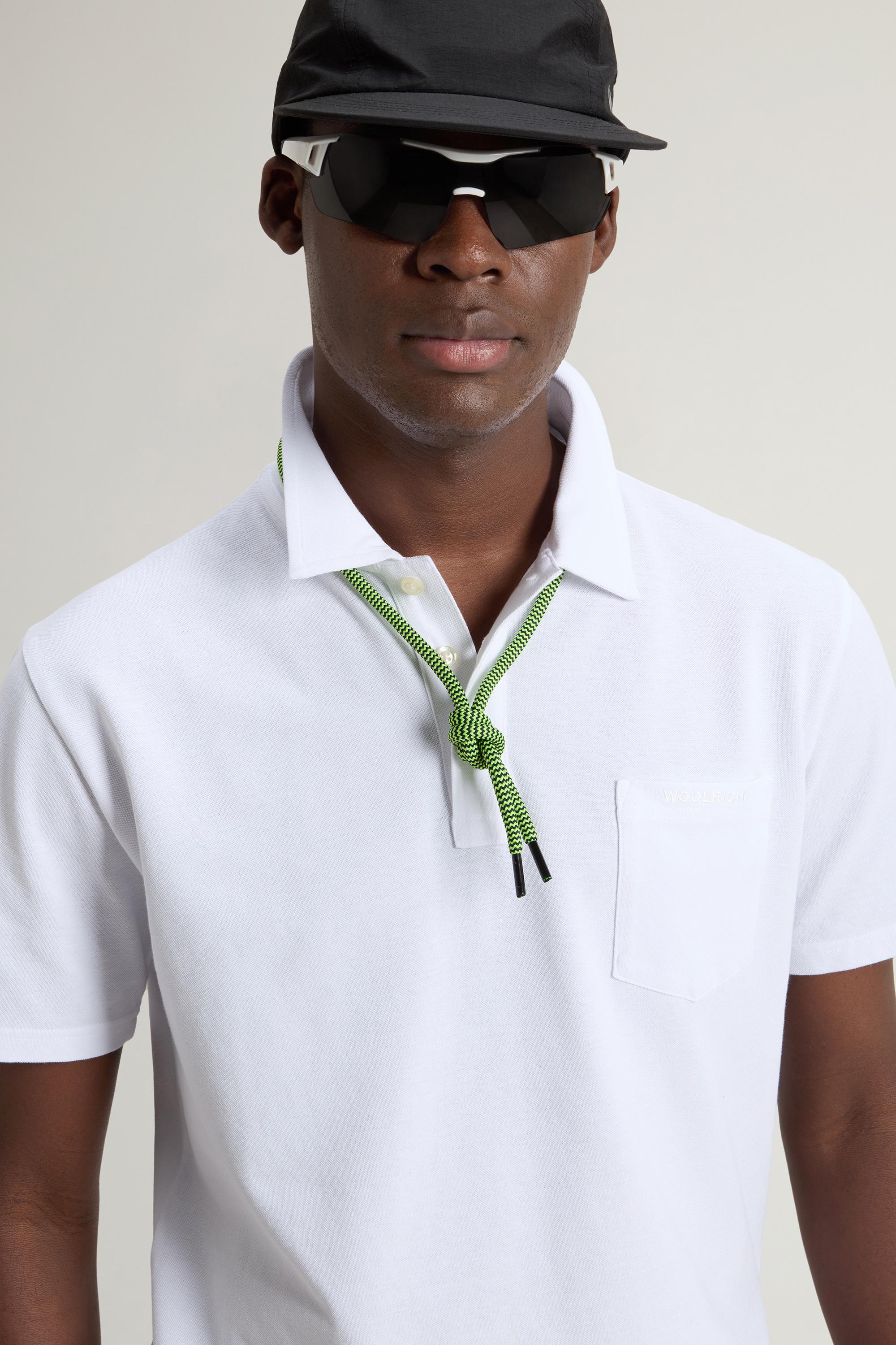 This short-sleeved polo shirt is a classic, versatile garment ideal for any occasion. Made from ice cotton, a light, fresh and breathable pure cotton fabric, it’s ideal for the warm months. The design features a classic collar, button fastening and a breast pocket embellished with an embroidered logo. The bartack-reinforced side slits ensure greater freedom of movement.