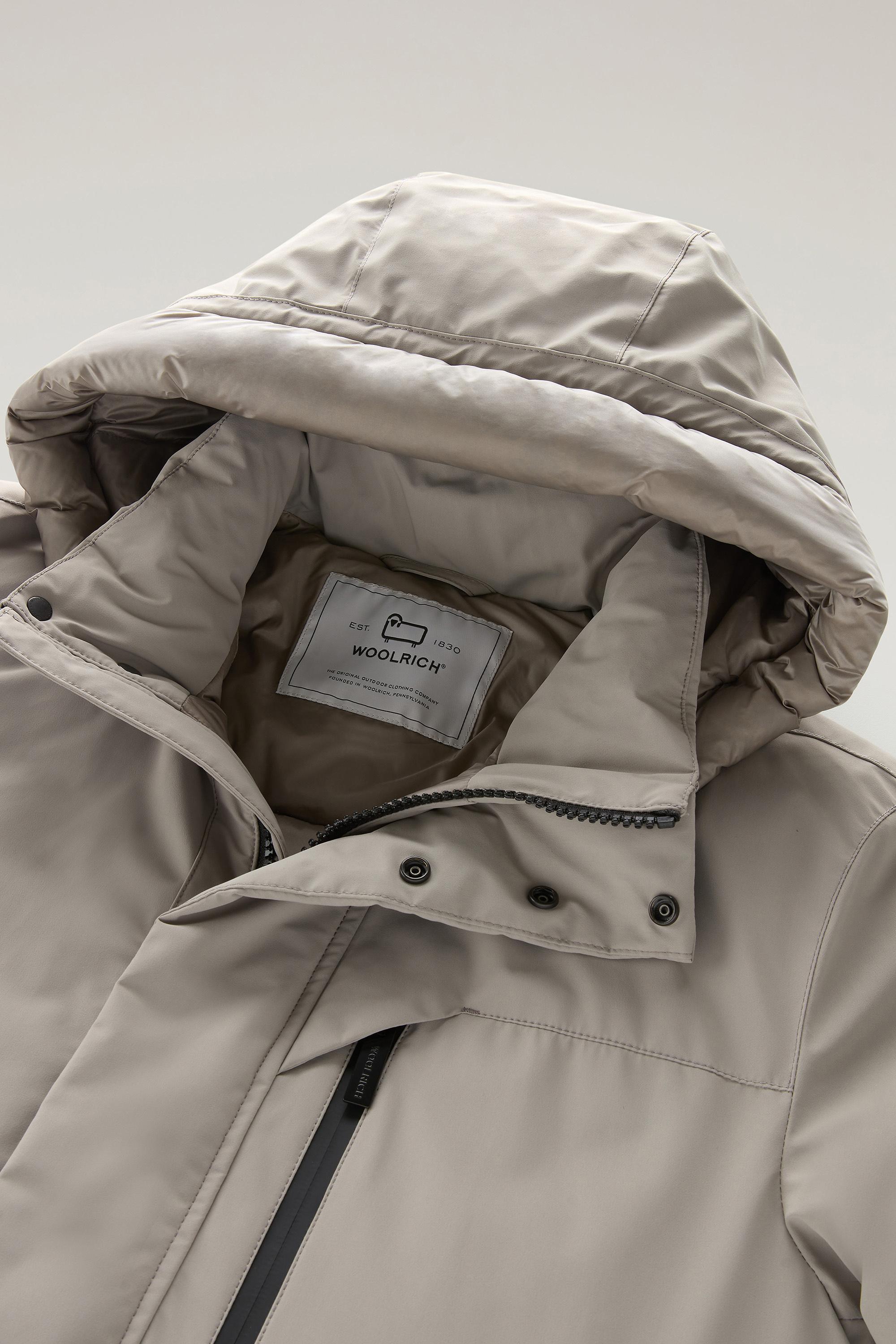 A high-performance garment with sleek and contemporary lines, this parka is made of stretch nylon that is waterproof and windproof to ensure protection from the elements. Padded with a mix of lightweight duck down and graphene fibers, it features a removable hood, three practical pockets, and minimalist details for a versatility that does not go unnoticed.