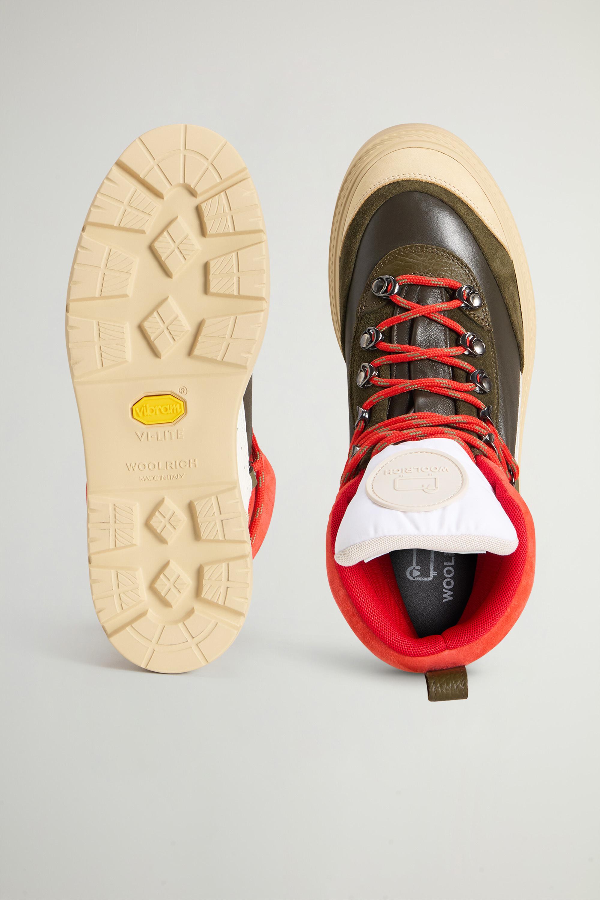 A practical, comfortable model ideal to wear during the cold months. Demonstrating the high quality of Made in Italy, these ankle boots are made from nubuck leather and suede, and feature nylon details and lace and hook fastening. These feature a Vibram Vi-Lite Military sole designed to ensure maximum grip, accompanied by a tread customized with the Buffalo Check pattern and a removable insole. Completing this model is a badge with raised logo on the tongue and Woolrich lettering on the heel and rear pull tab.