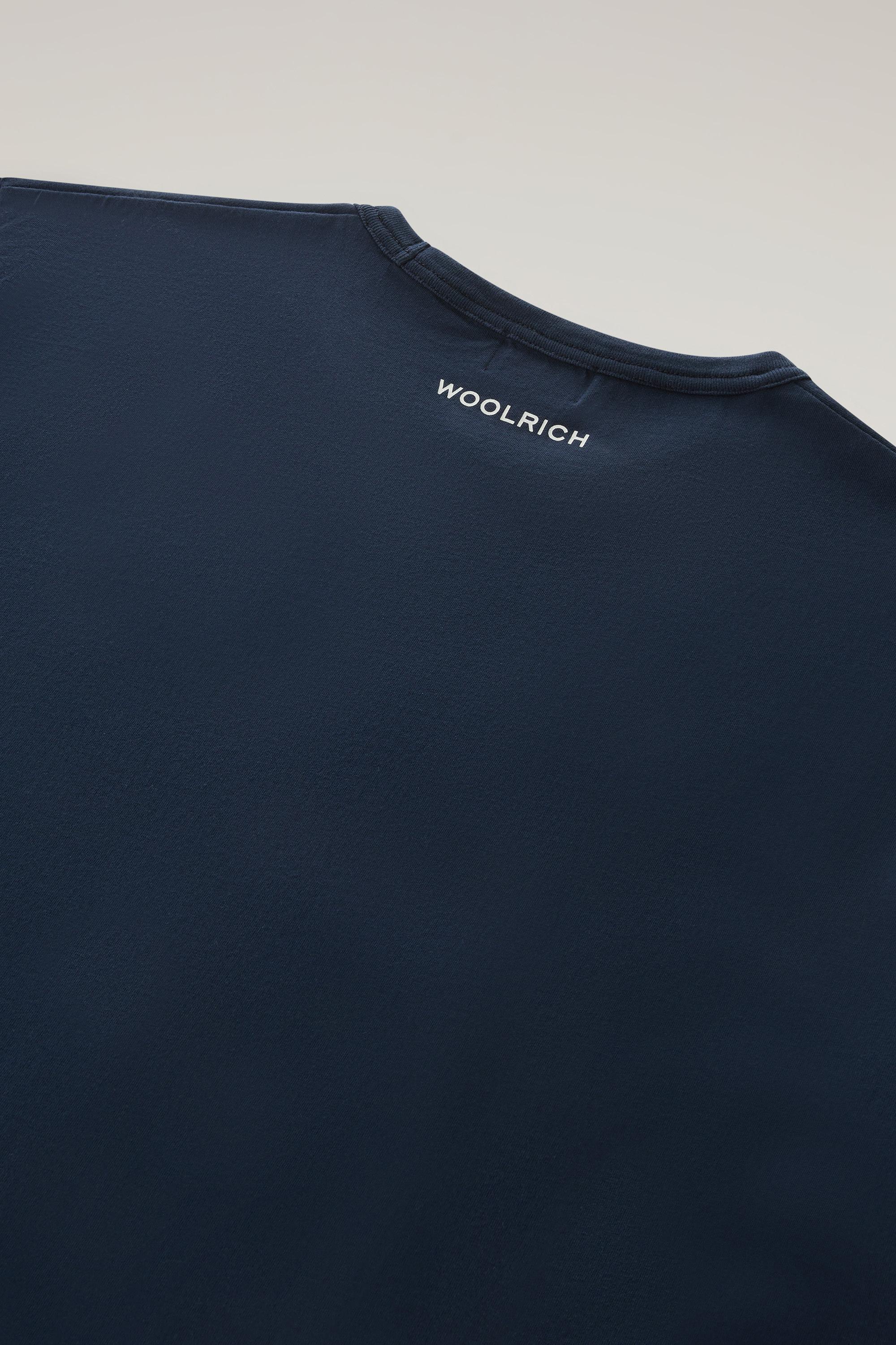 With its casual silhouette and nautical water-based print, this crewneck t-shirt epitomizes Woolrich's passion for adventure and outdoor activities. The model is made from pure organic cotton jersey and is finished with the logo on the back, adding a unique touch.