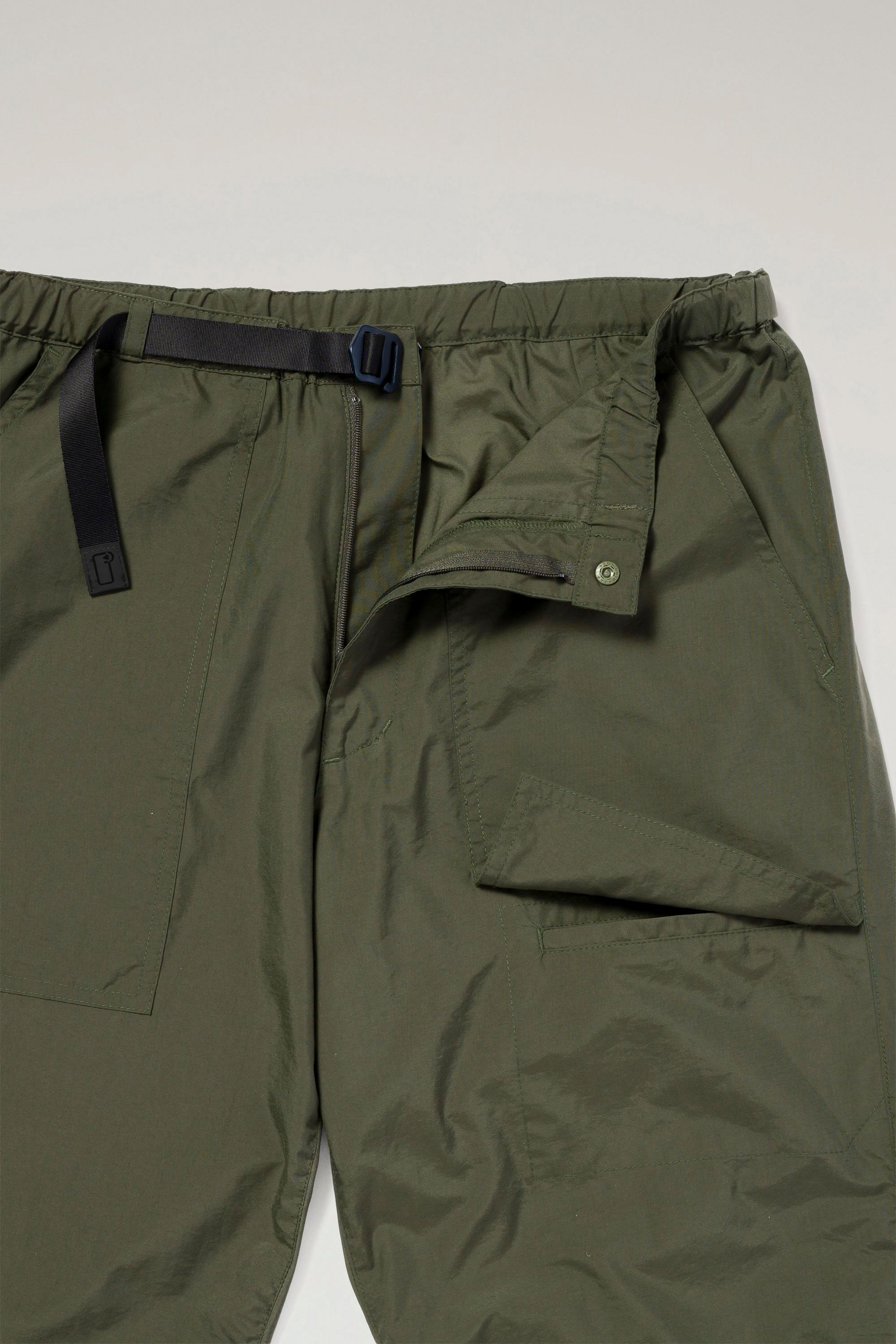 Our Ranch pants from the Outdoor Label Designed in Japan collection are the correct carry-on item for any adventure in nature. They're crafted in recycled nylon which has a water-repellent effect that is perfect for exploring rivers or waterfalls when hiking. The elasticated waistband has an adjustable belt for finding your right fit and it hosts an array of pockets: two side-angled front pockets, two buttoned pockets on the back, and elasticated anklets.
