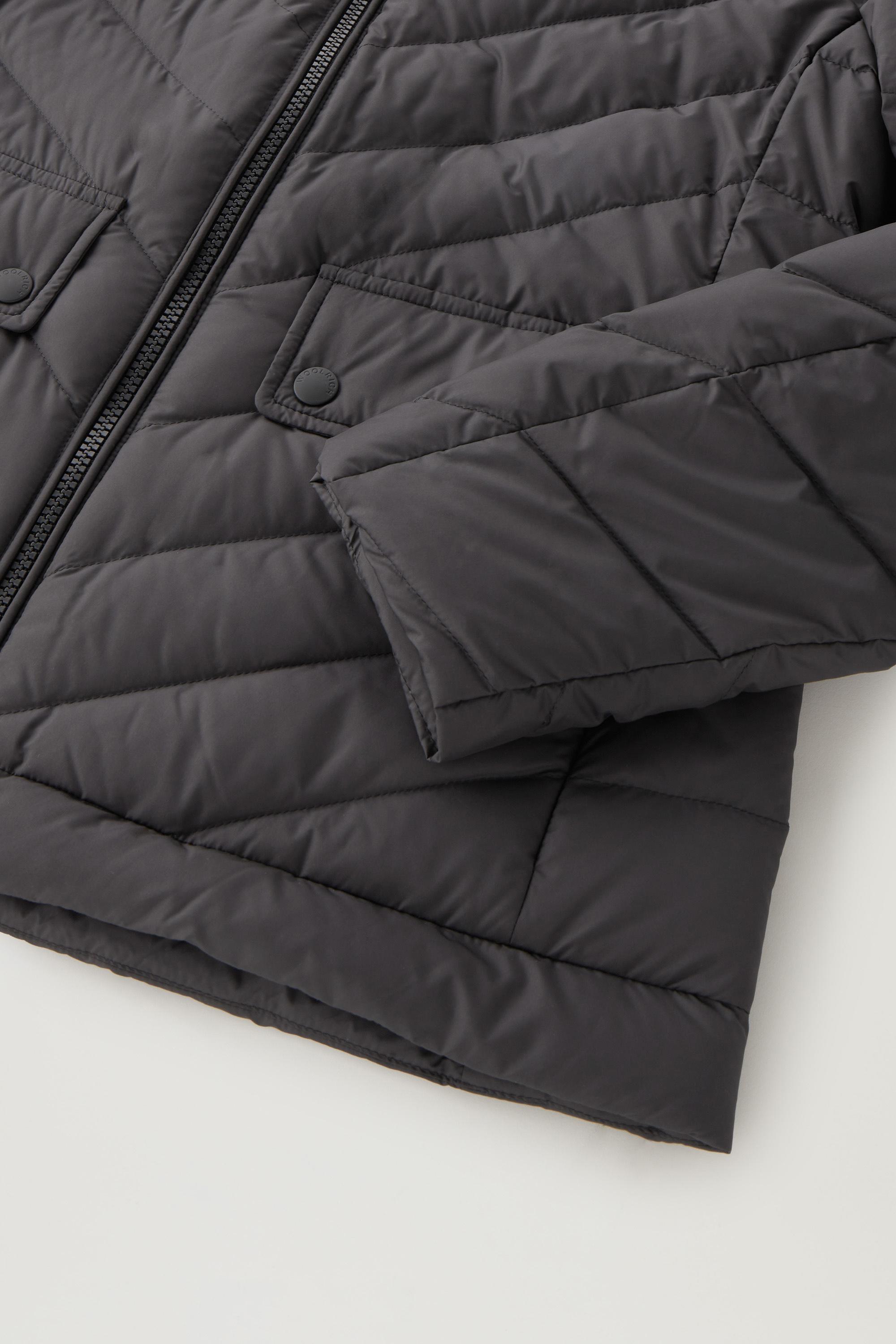 This quilted chevron jacket is a classic that you'll love for its versatility. Perfect for the city, but also suitable for hiking and outdoor adventures, it is elegant and functional at the same time. Lightweight yet filled with duck down for optimal warmth on cooler days, it's water-repellent and wind-resistant. It has a tongue with a snap button on the collar, concealed zip flap pockets and non-quilted inserts on the shoulders, for a finished touch.