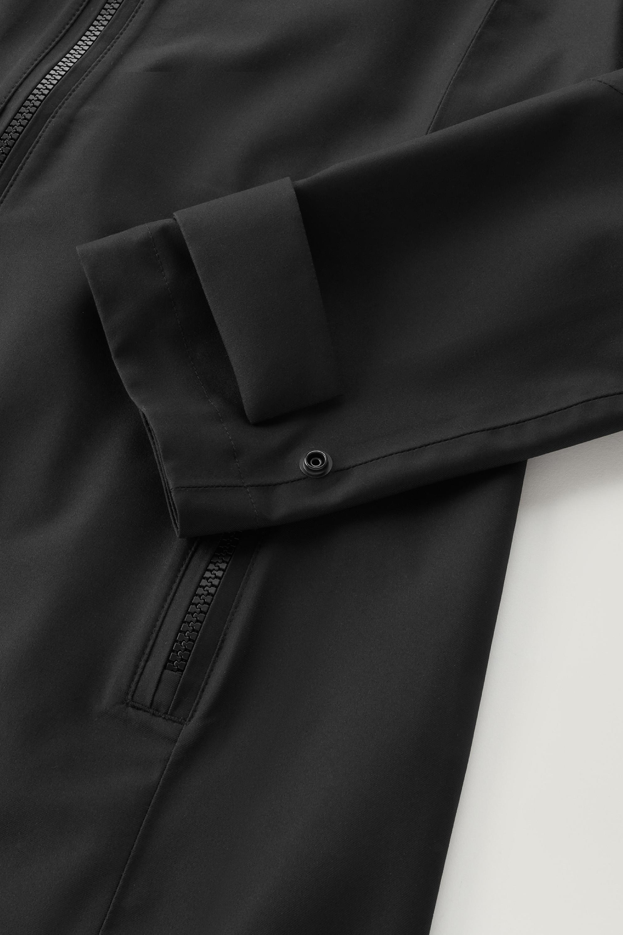 Our Leavitt parka is crafted in Light Stretch fabric that is breathable, windproof, and waterproof with fully taped seams for extra protection and comfort. The sleeves are ergonomically designed to allow you to move freely. It's a lightweight, essential piece with tapered lines that's ideal for mid-season. It has zippered pockets, a zipper closure, and an adjustable hood with a visor for maximum protection on a rainy day.