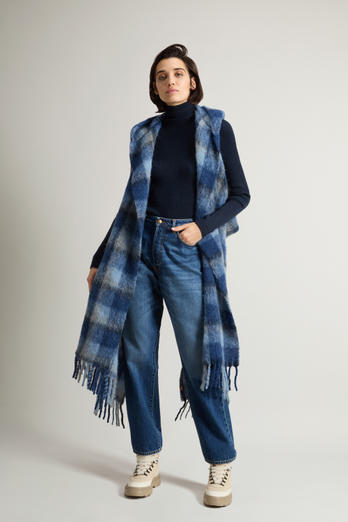 Alpaca-, Mohair and Wool-Blend Cape - Black Check